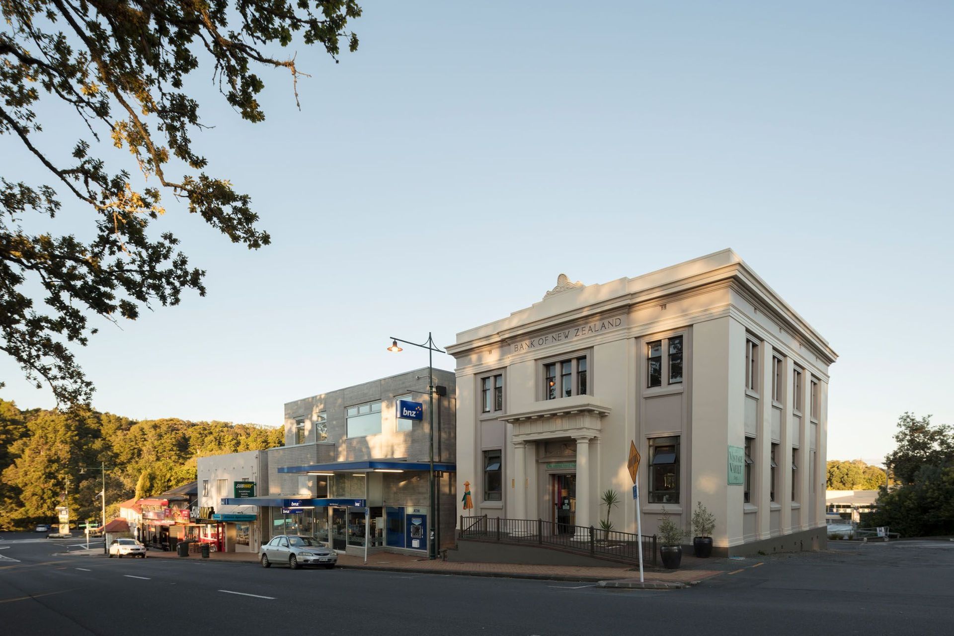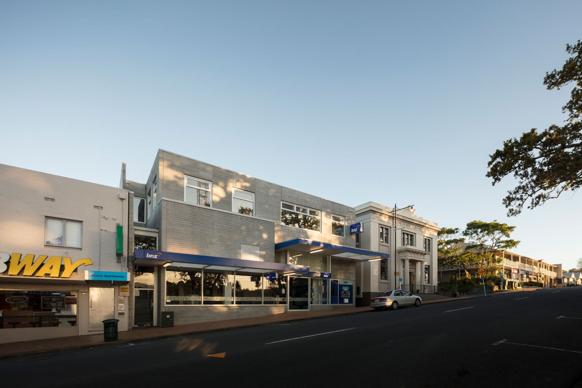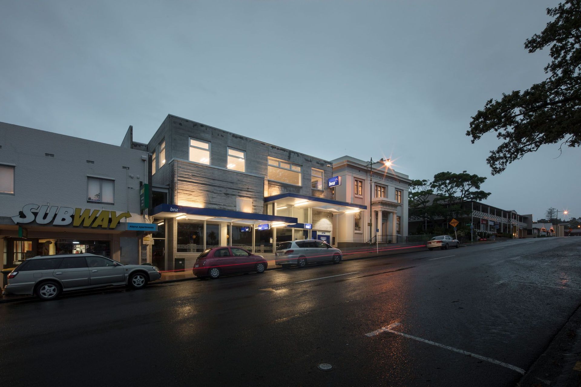 ArchiPro Project Summary - A harmonious blend of contemporary retail and historic architecture, featuring a pedestrian lane that connects Neville Street and Warkworth Street, with a striking precast concrete structure and a double-height atrium that enhances natural light and complements the existing Bank of New Zealand building.