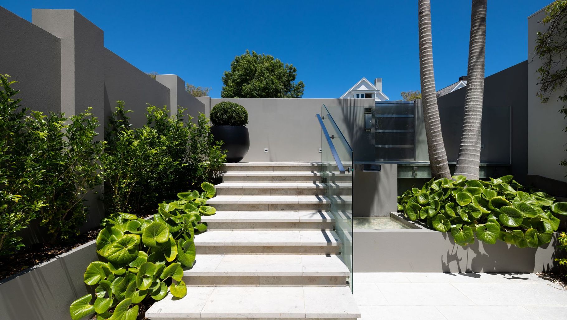 ArchiPro Project Summary - A reimagined waterfront garden featuring a simplified plant palette, enhanced agave, and a Mediterranean mix of Italian cypress, thuja, rosemary, and citrus, harmoniously blending with established palms and bird of paradise.
