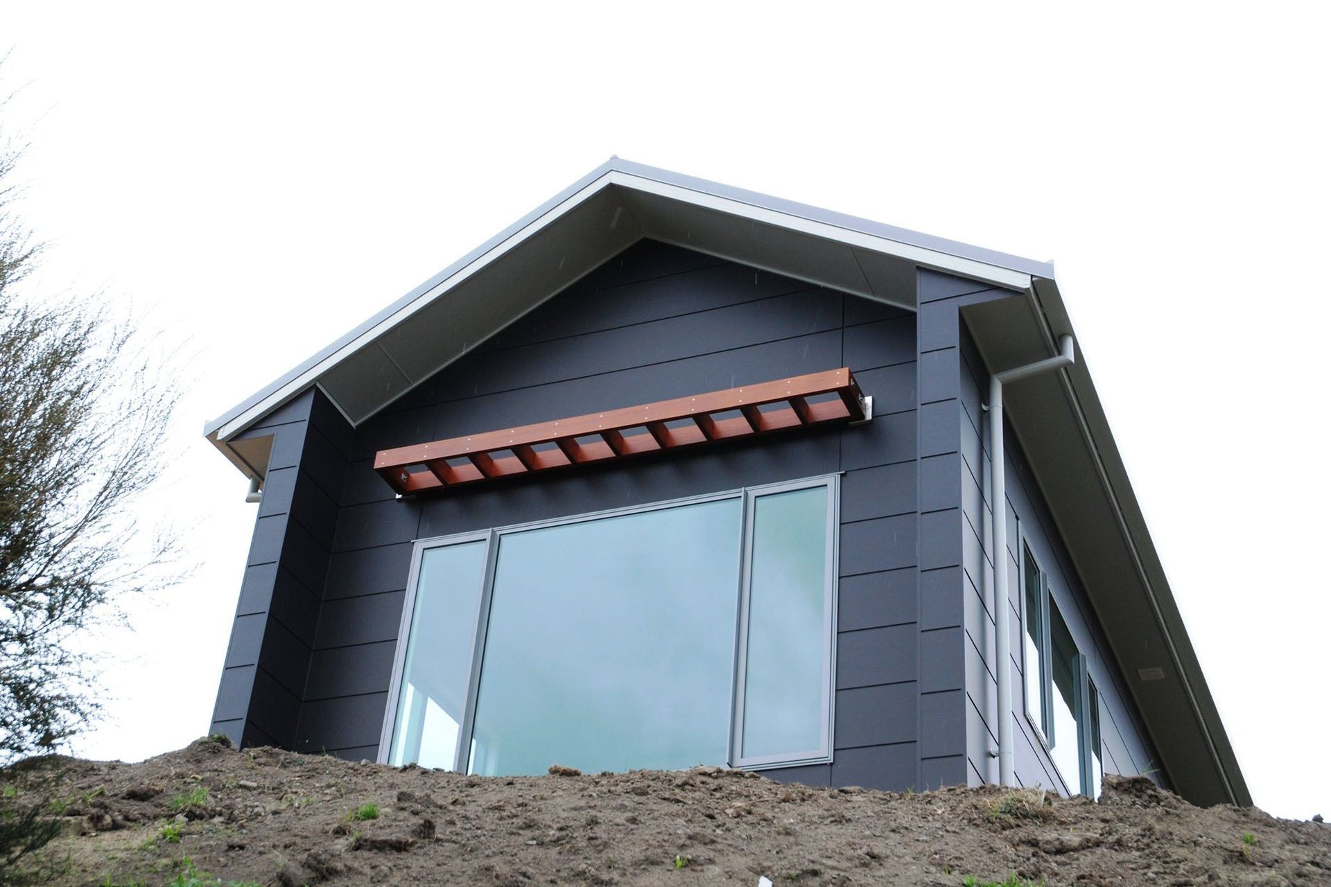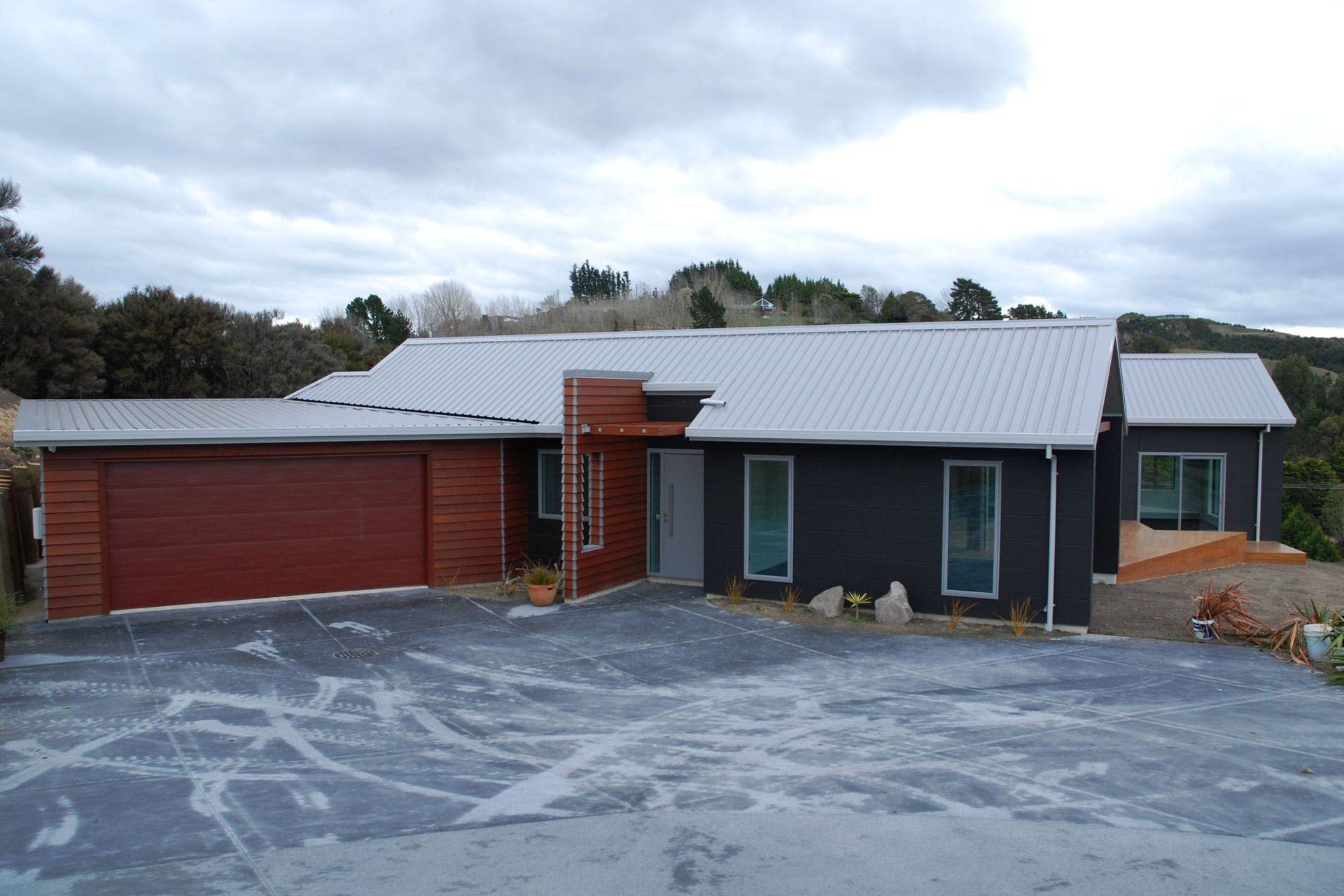 ArchiPro Project Summary - Watson's Residence is a charming cottage-style home in Pakowhai, featuring elegant siding and a beautifully designed roof, strategically positioned on a gentle slope.