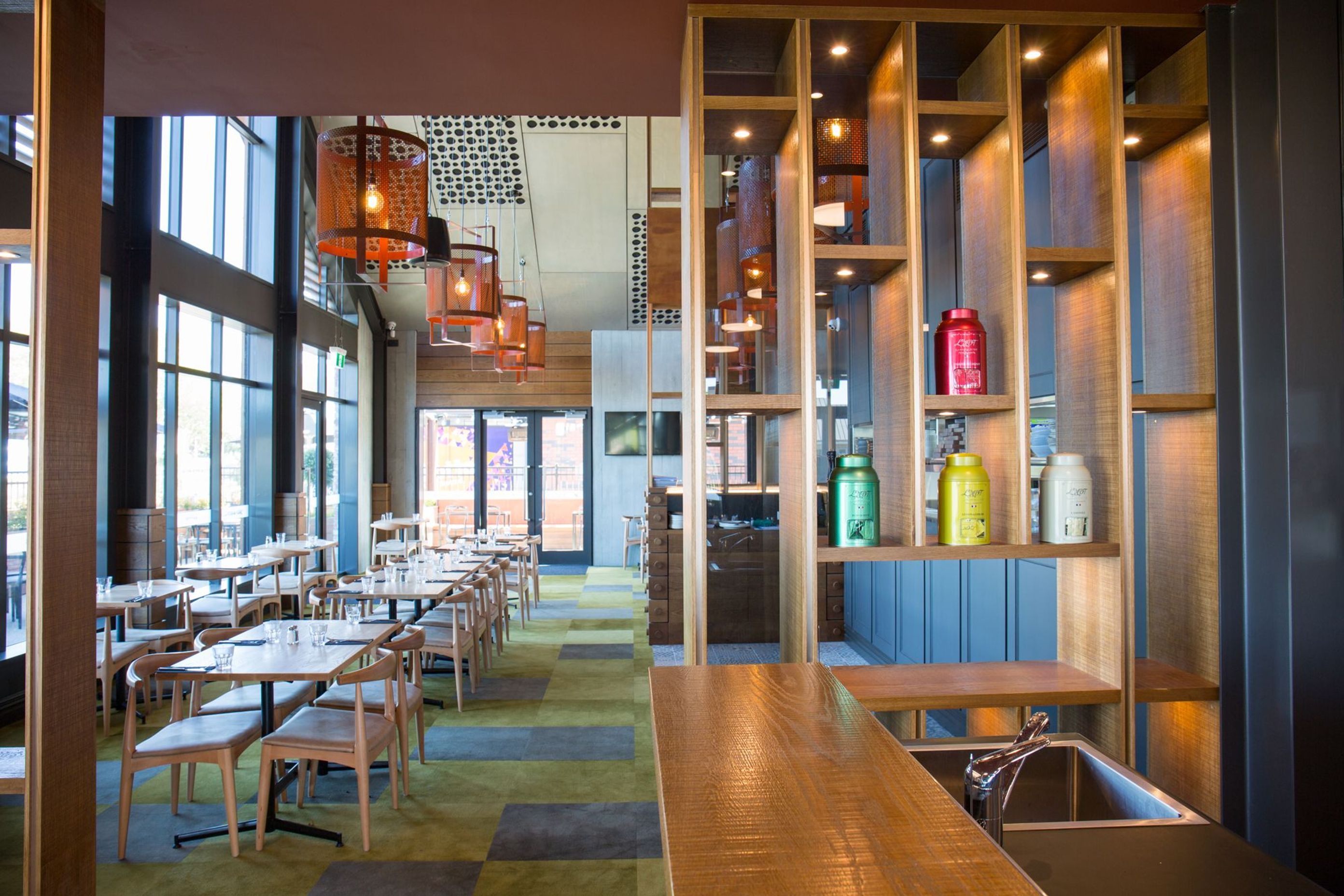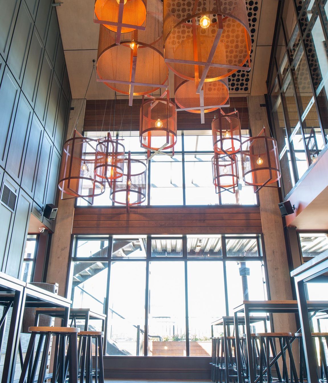 ArchiPro Project Summary - A thoughtfully designed venue featuring a central service space for efficient operations, complemented by a minimal color scheme and textured interiors, highlighted by custom light pendants that reflect Hamilton's natural landscape.