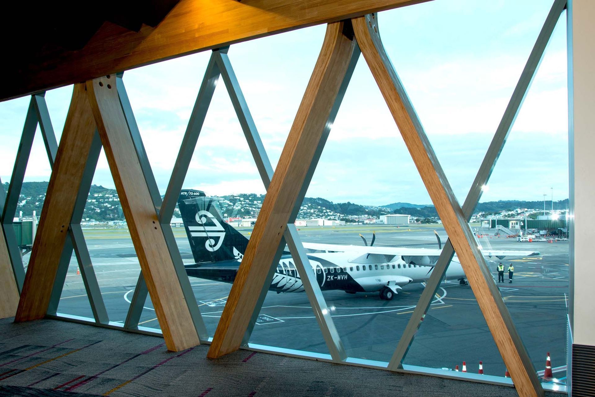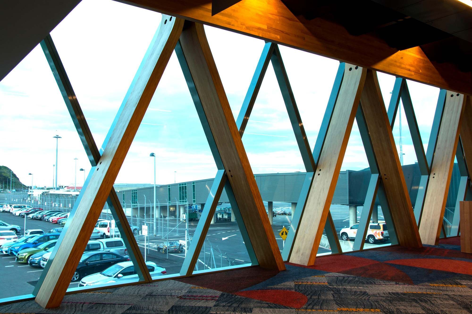 ArchiPro Project Summary - Wellington Airport Southern Extension featuring innovative laminated structural timber and high-performance Thermosash glazing, designed to enhance visitor experience while minimizing heat gain and glare.