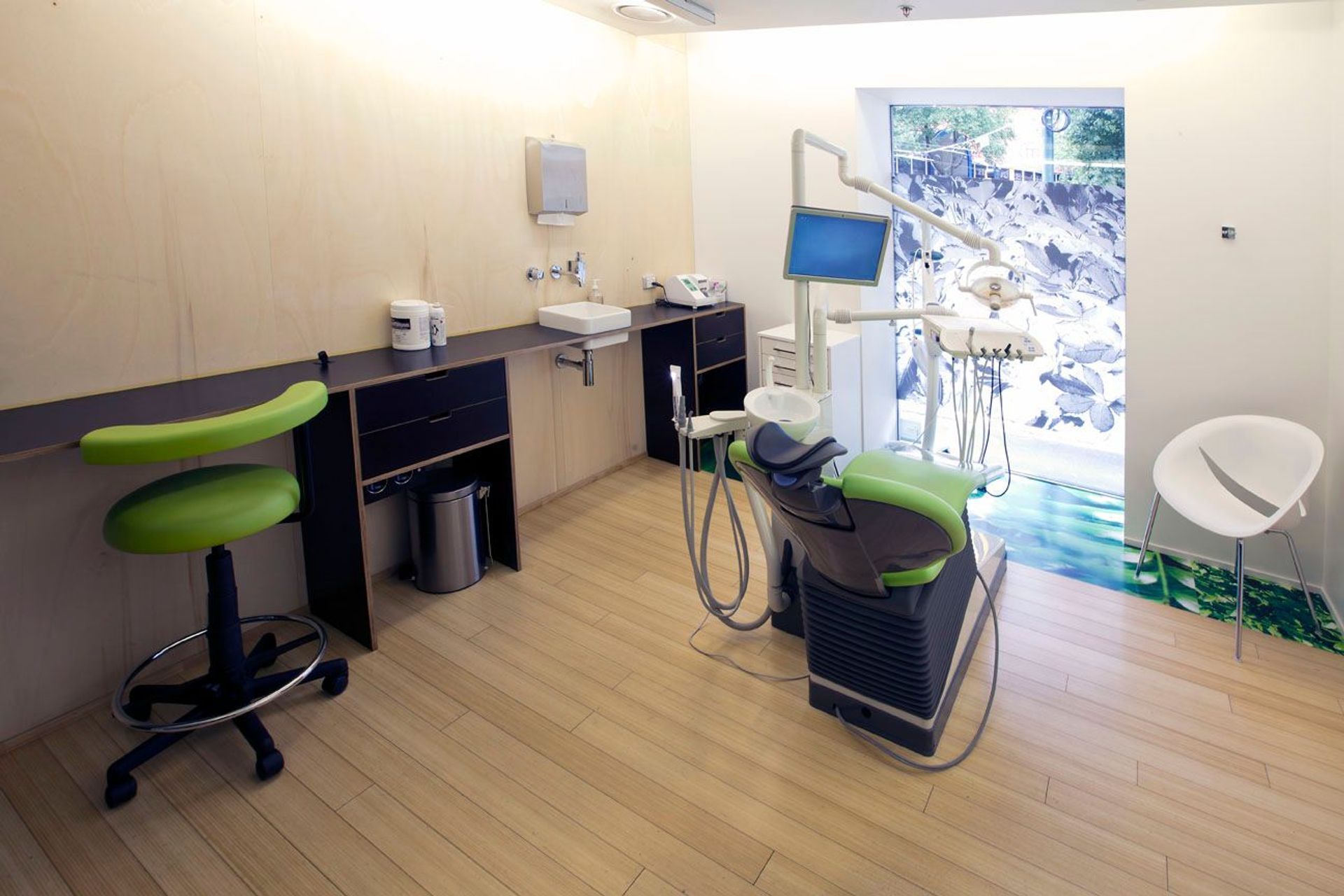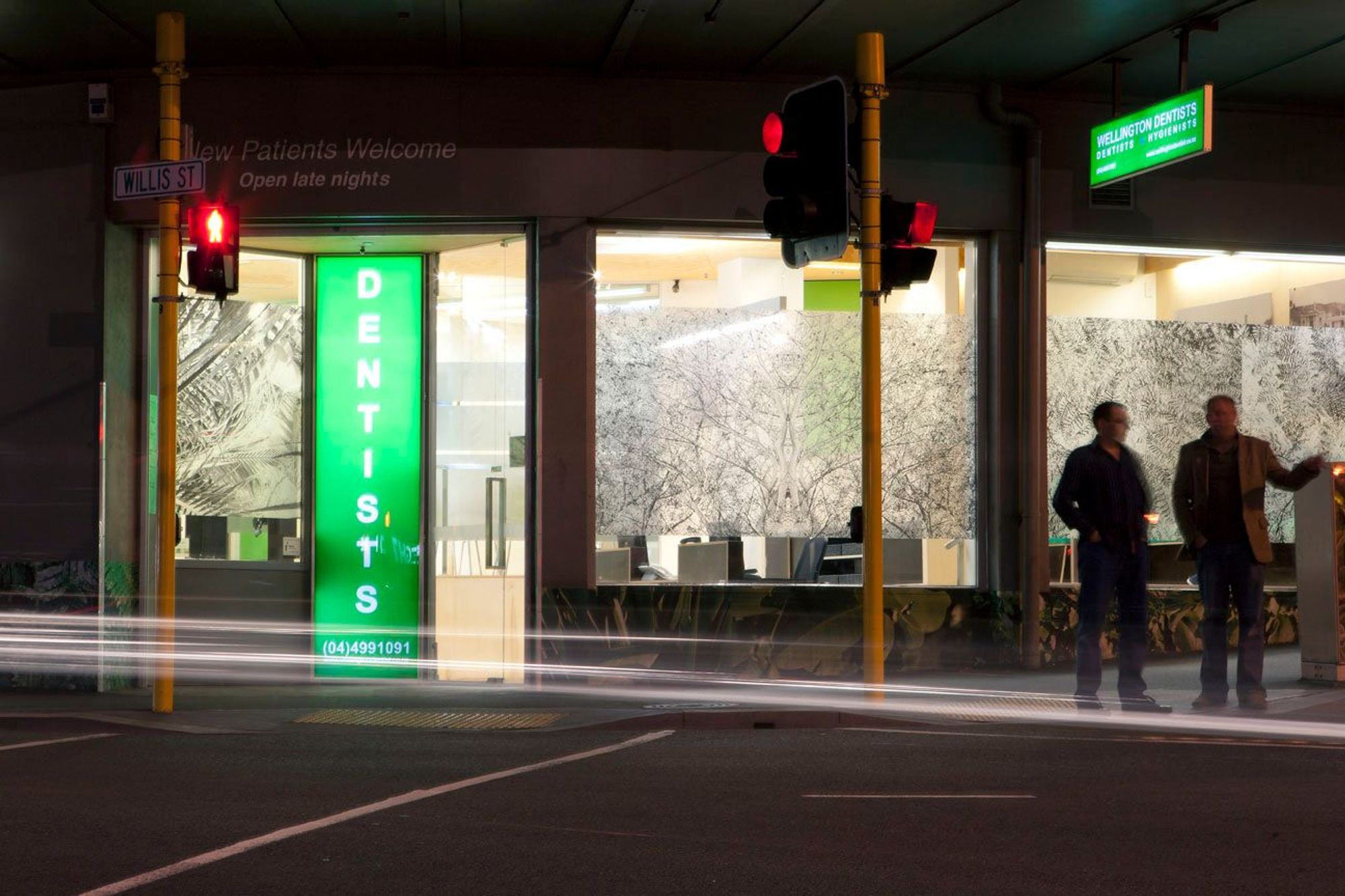 ArchiPro Project Summary - Innovative street front dental surgery in New Zealand, designed to create a stimulating environment for both staff and patients, featuring extensive graphic elements that provide street views while ensuring privacy.