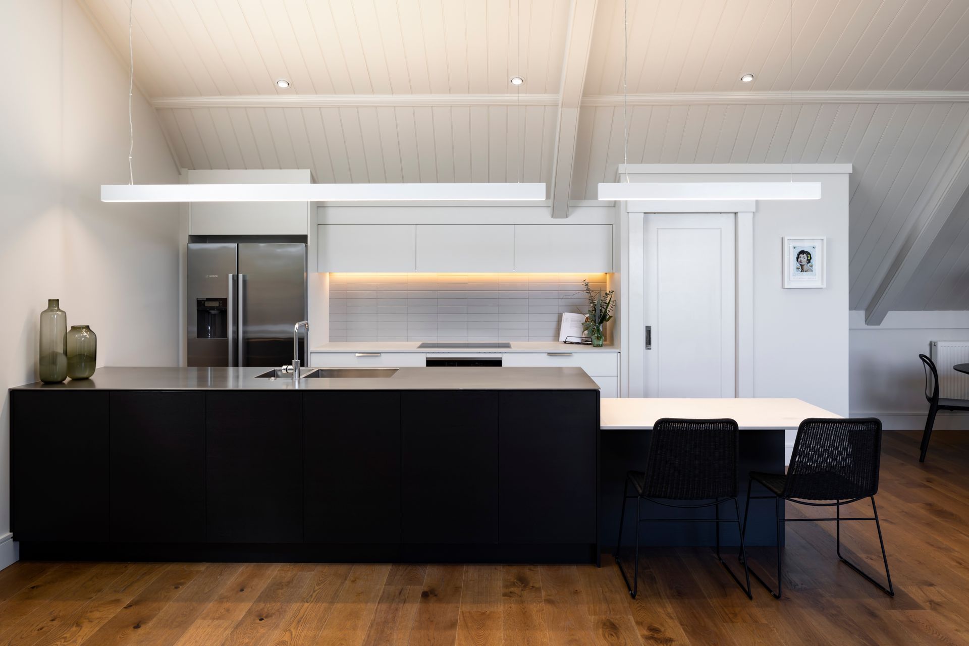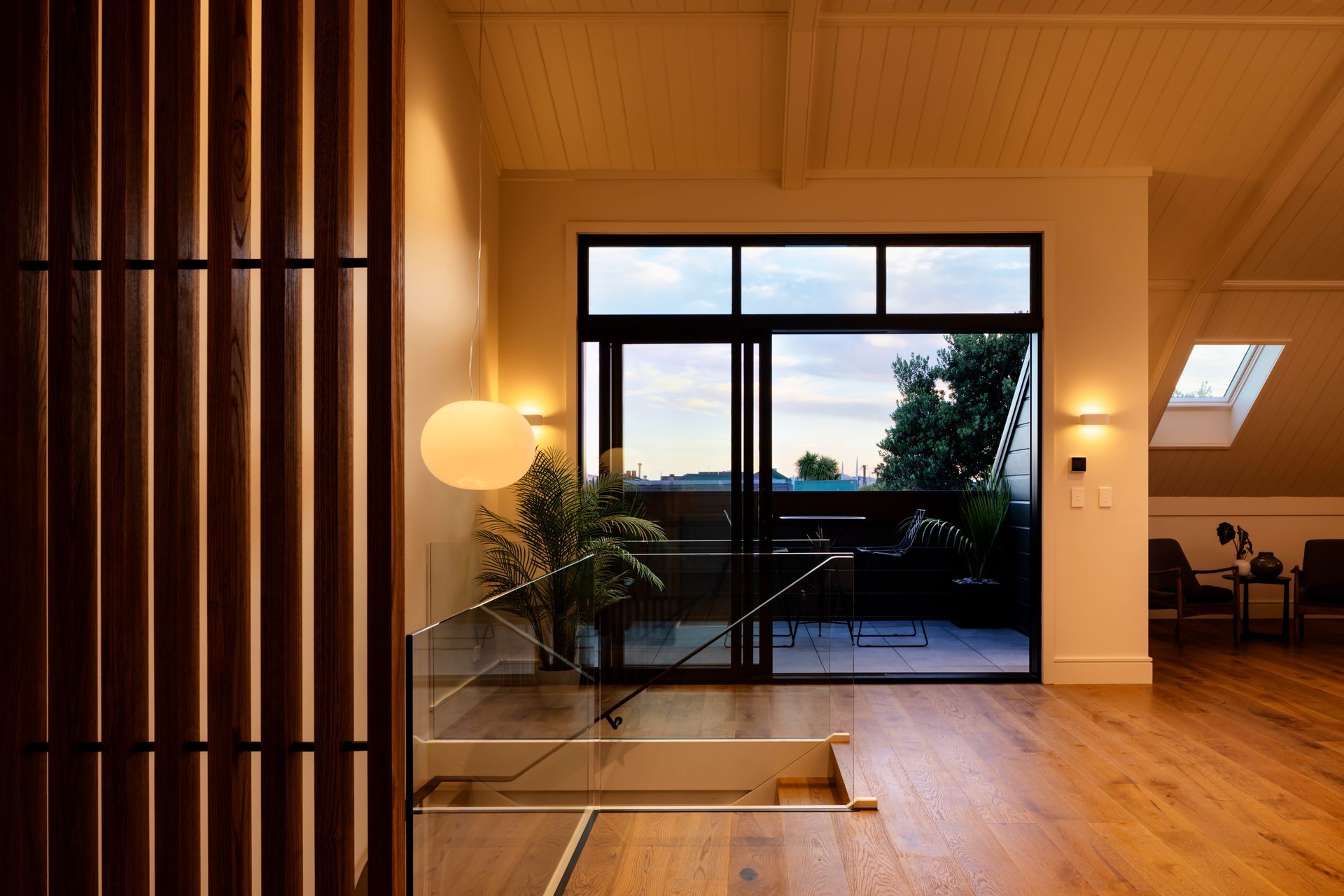 ArchiPro Project Summary - Conversion of the historic Wesley Church in Petone into elegant residences, featuring a harmonious blend of preserved architectural details and modern interiors, including bespoke kitchen and bathroom designs inspired by the church's stunning stained glass.