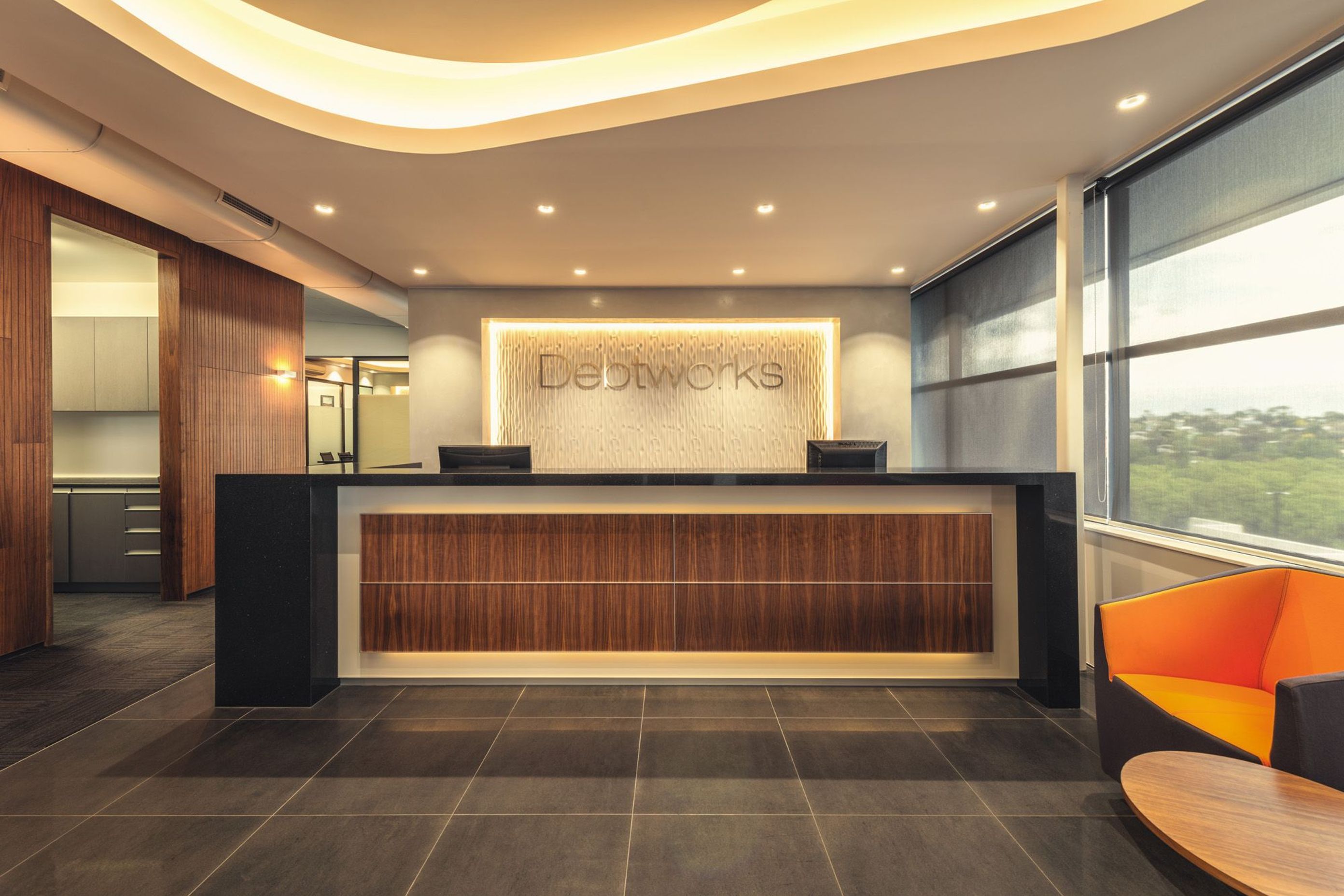 ArchiPro Project Summary - The West Auckland Office Fit Out project features a modern workspace designed for productivity, with open-plan areas, meeting rooms, and sustainable materials.