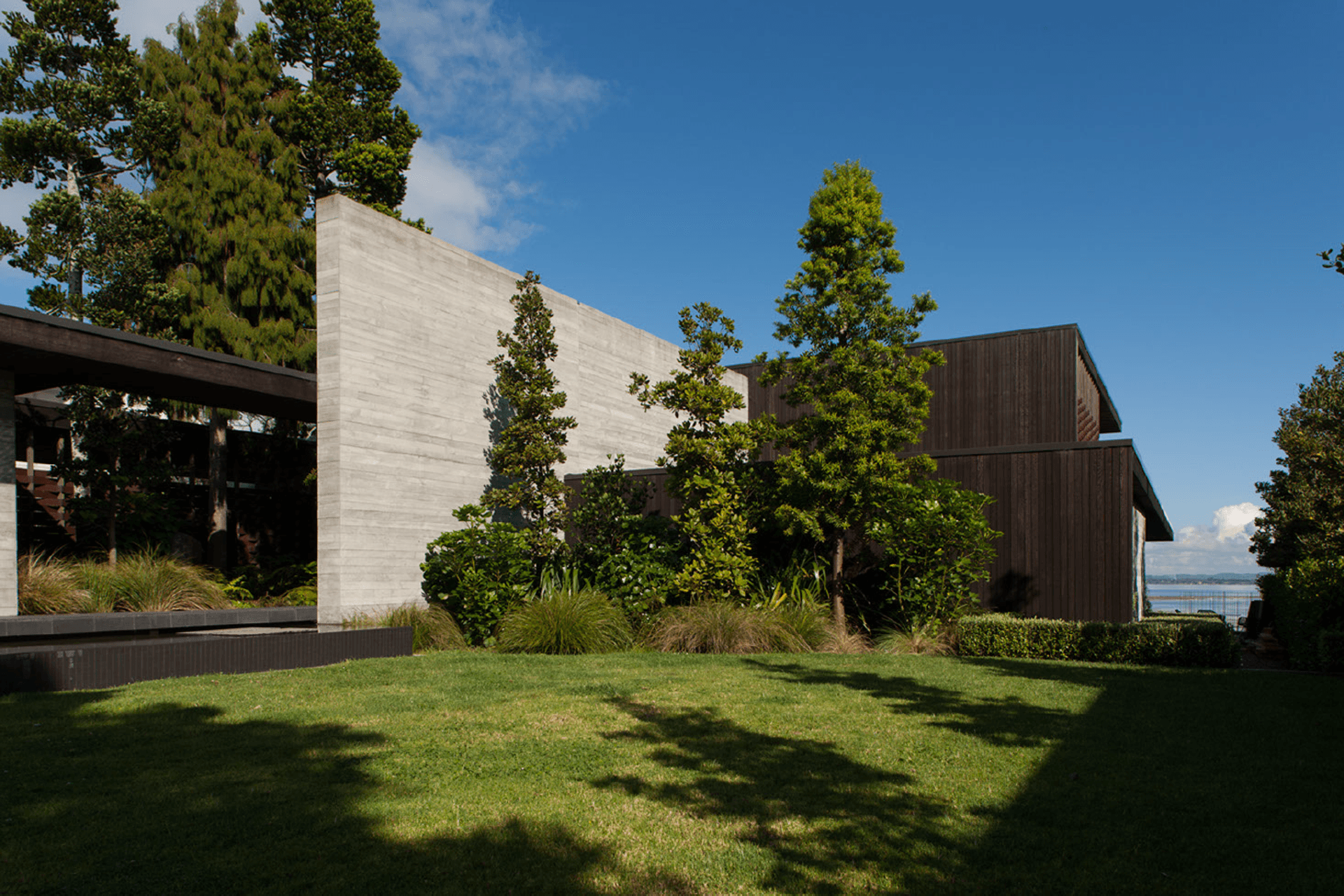 ArchiPro Project Summary - Westmere House is an urban family homestead in Auckland, designed by Ponting Fitzgerald Architects, showcasing the enduring qualities of concrete and cedar, creating a seamless connection between indoor and outdoor spaces.