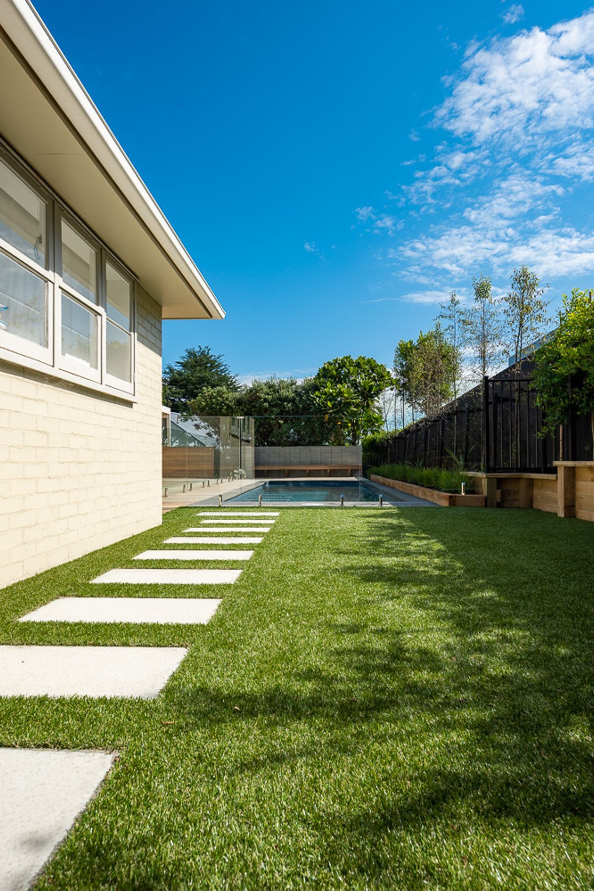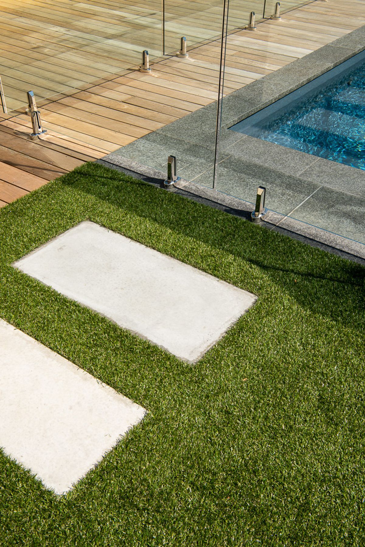 ArchiPro Project Summary - A modern landscape design featuring a serene pool area and lush greenery, creating an urban oasis.