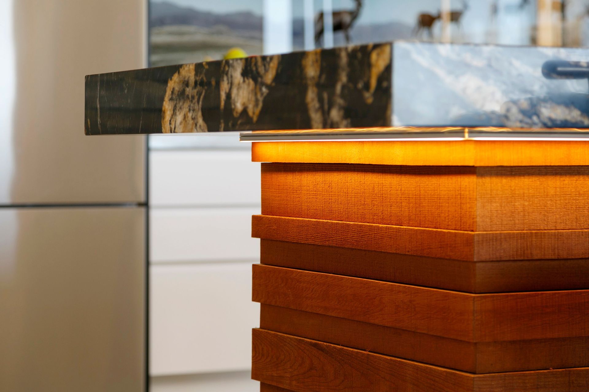 ArchiPro Project Summary - A stunning kitchen design that harmonizes with the resort-style architecture, featuring open-plan functionality, ample storage, and a seamless connection to nature through natural materials and textures.
