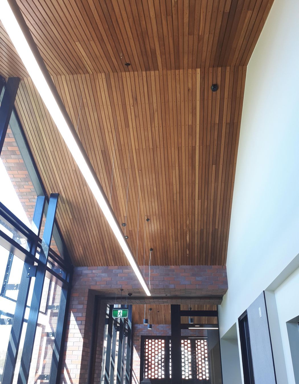 ArchiPro Project Summary - Whanganui Collegiate School features JSC Timber 100% FSC Iroko for its sarking detail, combining beauty, sustainability, and cost-effectiveness, with customizable profiles including ZONE fire retardant tested for 1s fire rating.