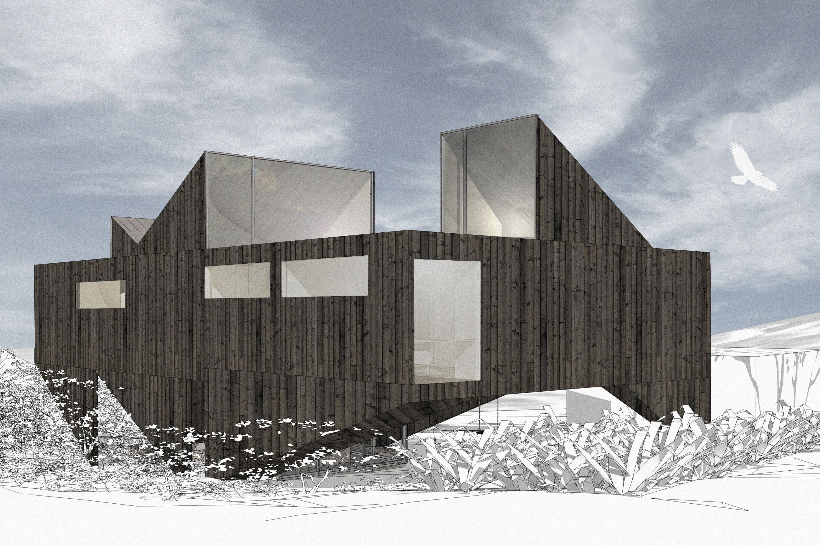 ArchiPro Project Summary - A sculptural family home in a sheltered seaside valley, designed for sustainability and connection to nature, featuring expansive views and a durable burnt larch exterior.