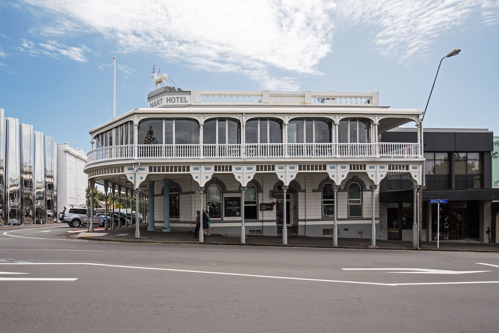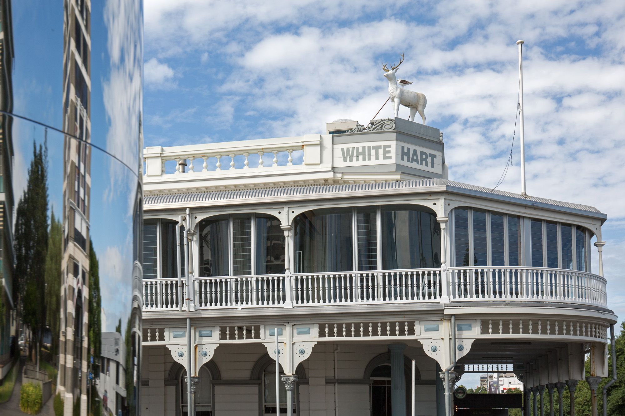 ArchiPro Project Summary - The revitalization of New Plymouth's historic White Hart Hotel combines careful restoration of its original features with contemporary design elements, creating vibrant multi-use spaces and a welcoming outdoor quadrangle in the city's cultural precinct.