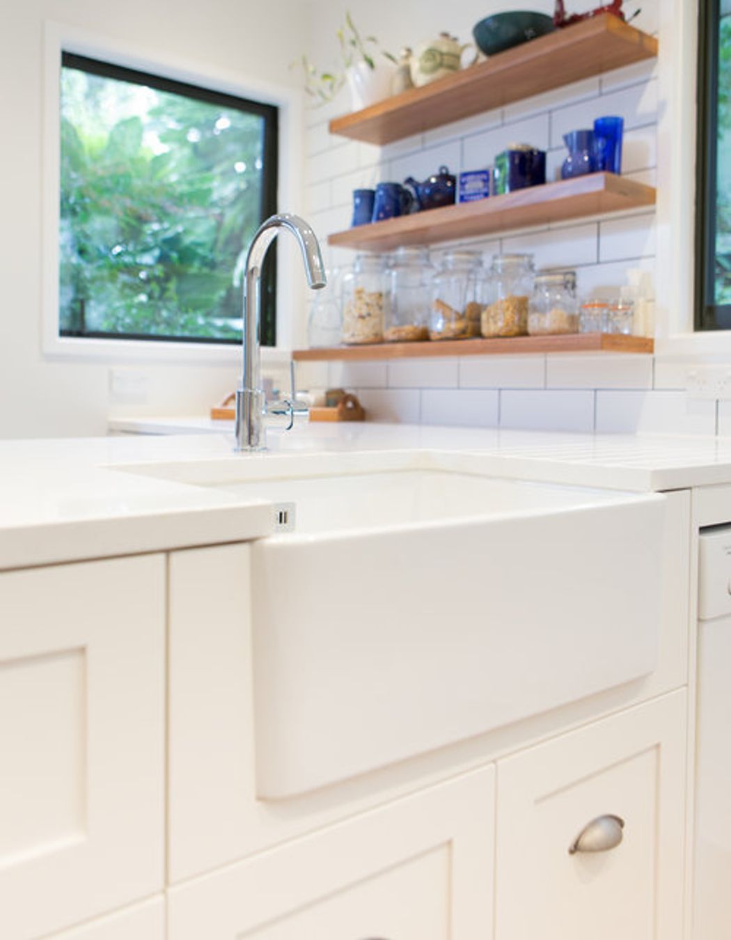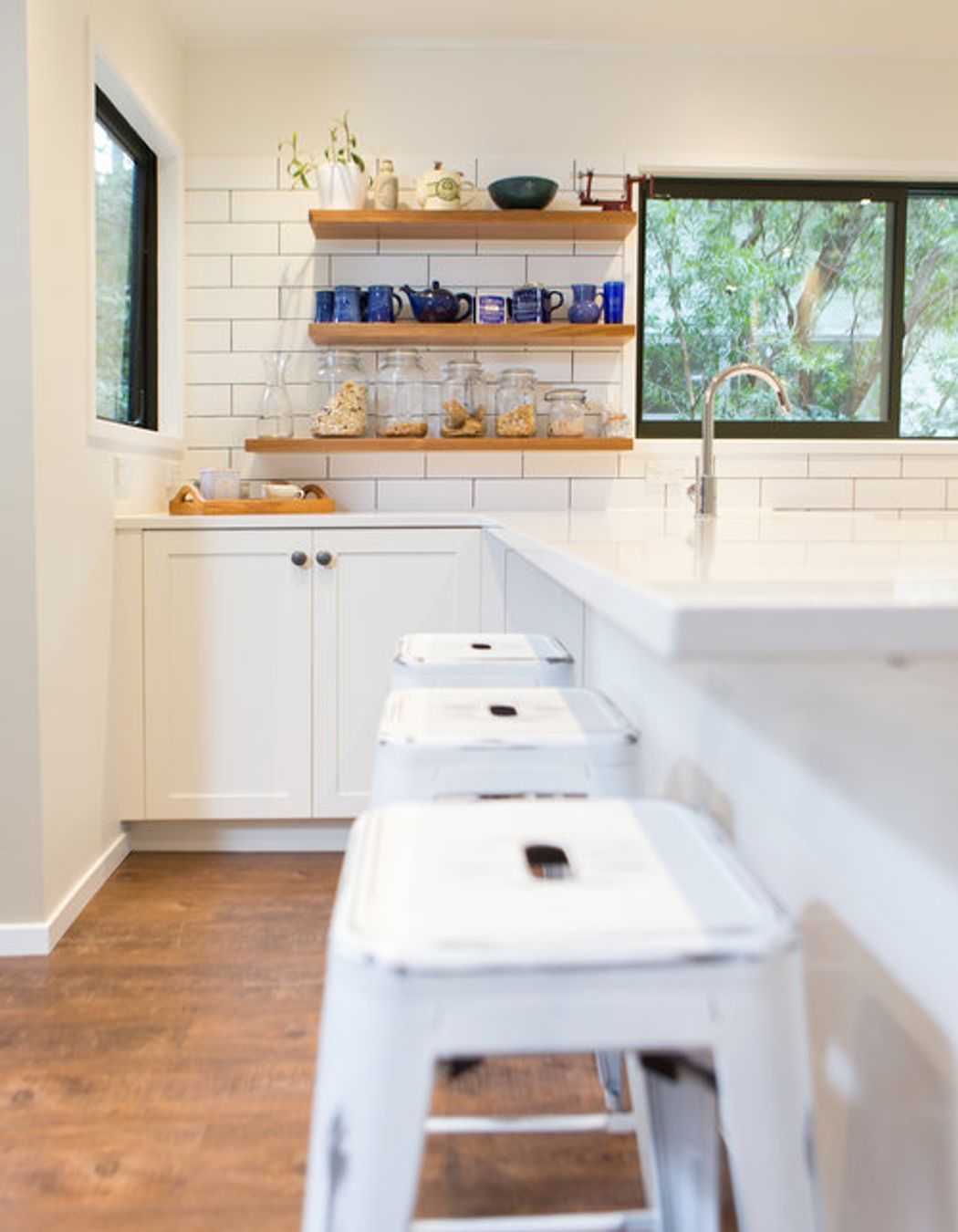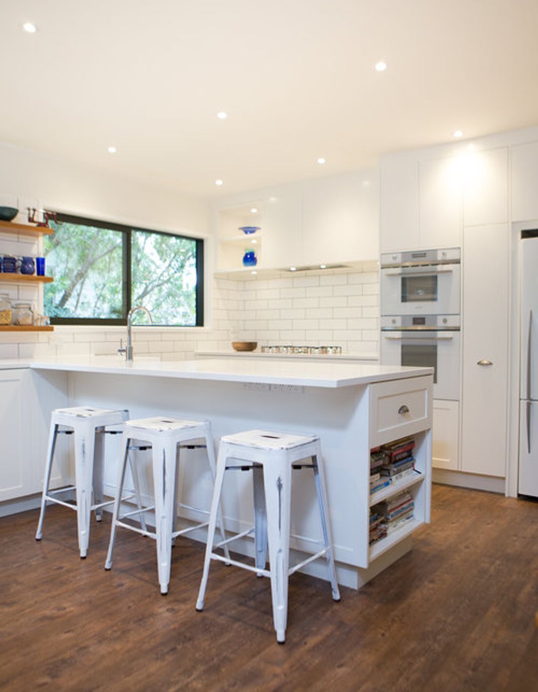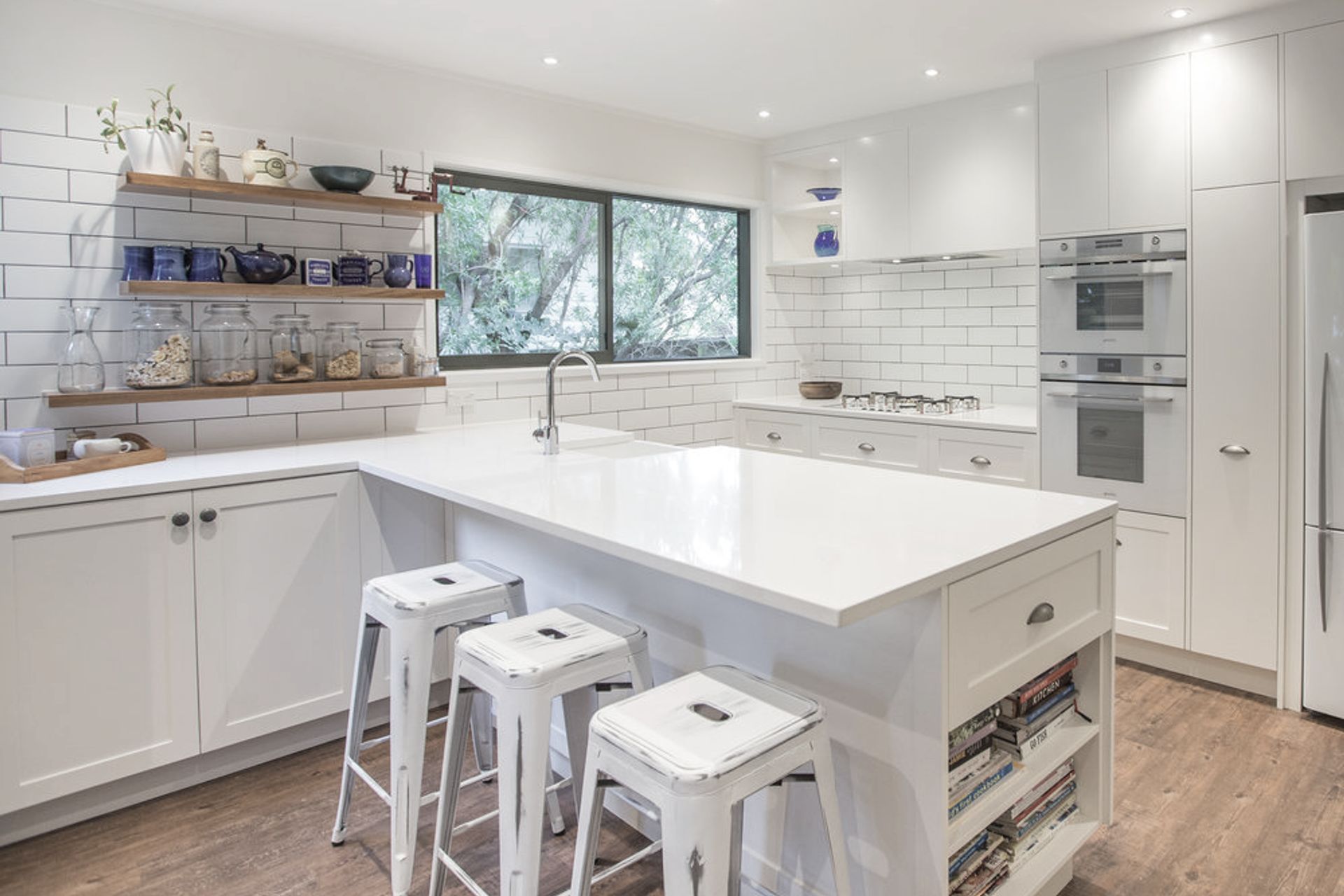 ArchiPro Project Summary - A transformative renovation creating a spacious kitchen and dining area for a family of four, featuring a harmonious blend of white tones softened by timber accents and satin finishes.