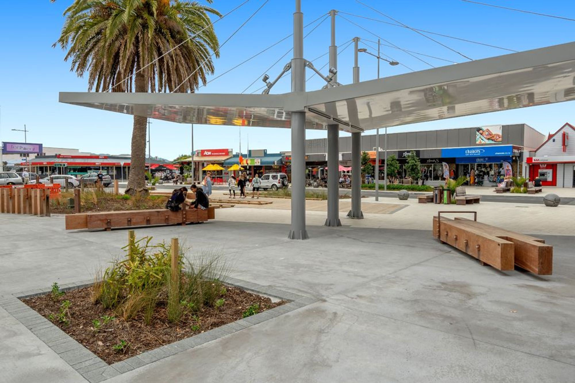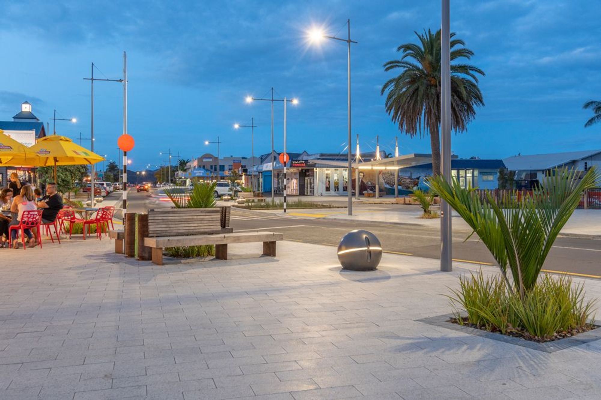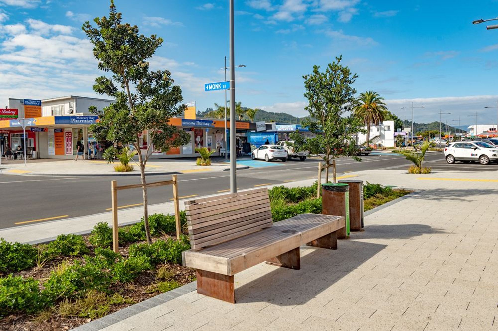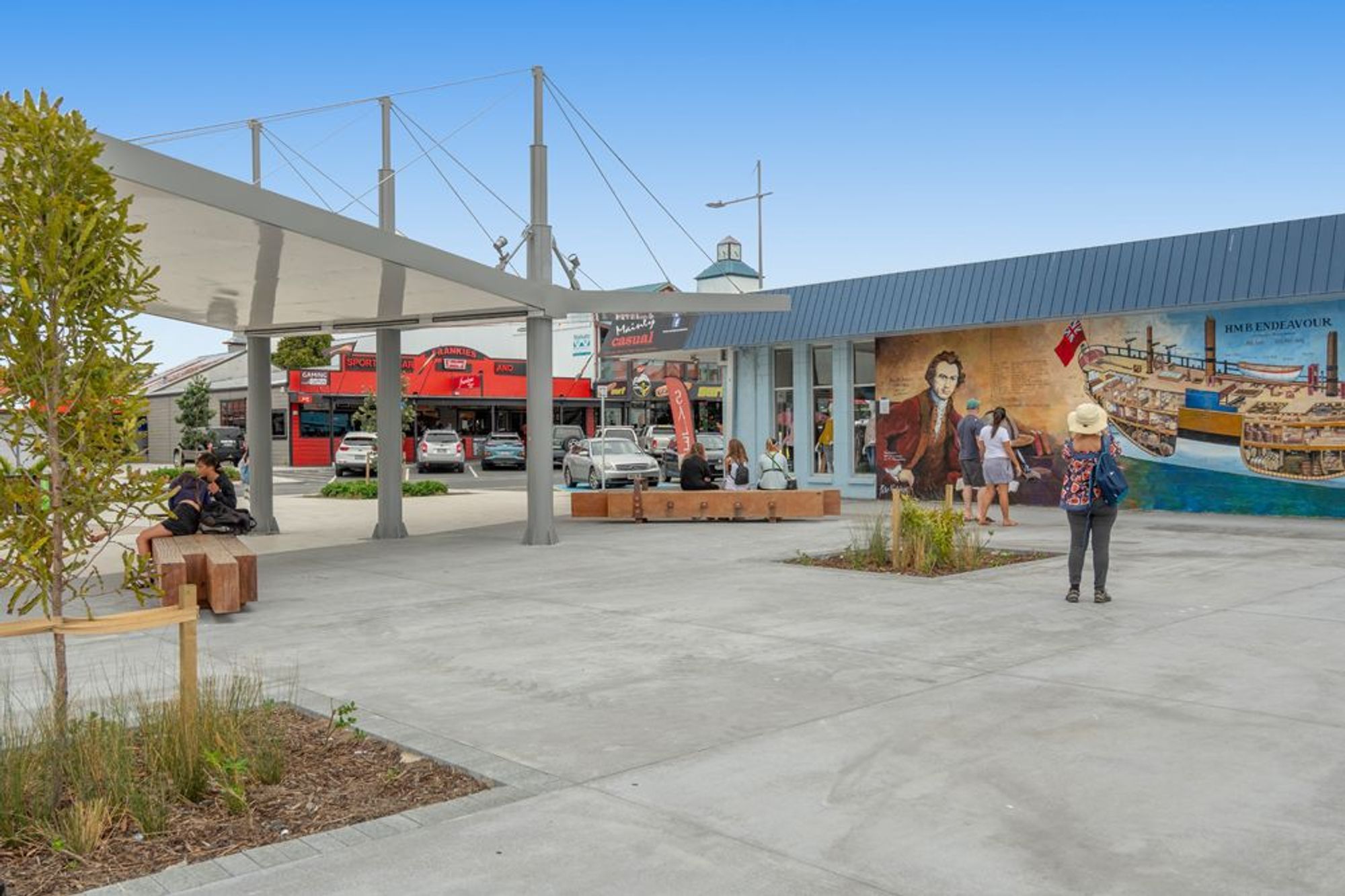 ArchiPro Project Summary - Revitalization of Whitianga Town Centre with a navigation-themed design, enhancing pedestrian spaces and stormwater management, completed in time for the 250th anniversary of James Cook's landing.