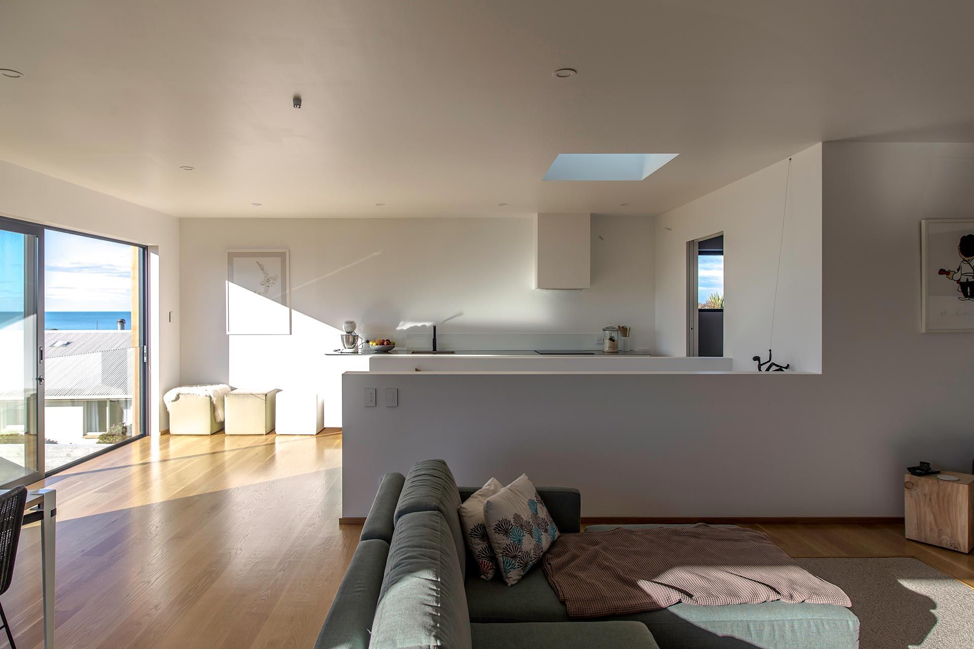 ArchiPro Project Summary - Whittaker House: A compact, two-level residence in Kakanui, designed to maximize sea views and sunlight while ensuring privacy, featuring three bedrooms and a modern interior with American Oak, all wrapped in a durable cedar-clad exterior.