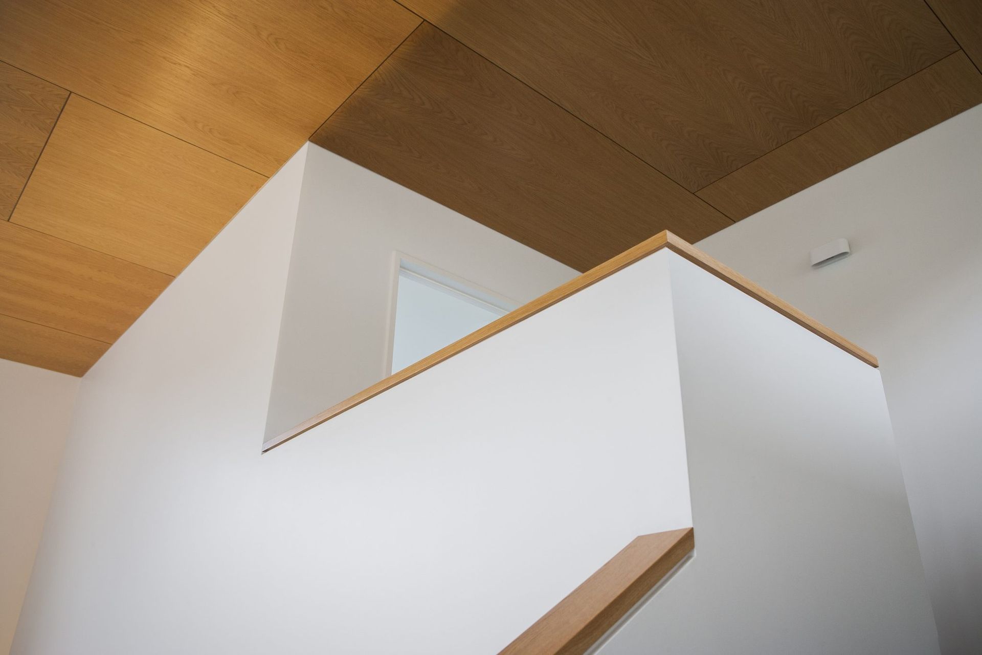ArchiPro Project Summary - L-shaped three-bedroom house in Sumner designed for optimal sunlight, featuring a double-height living room with American White Oak panels, handle-less Teak cabinetry in the kitchen, and a warm roof construction for enhanced insulation.