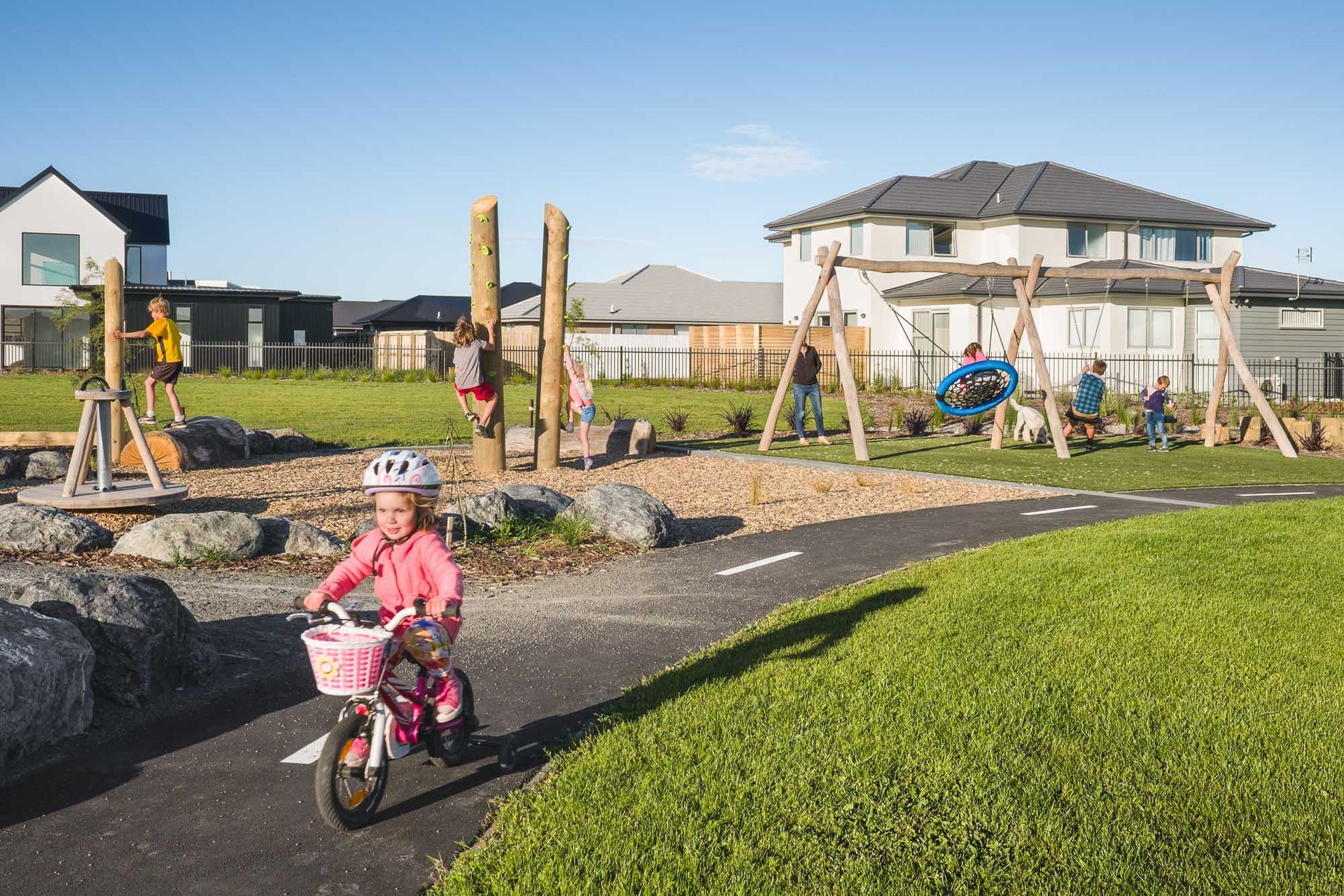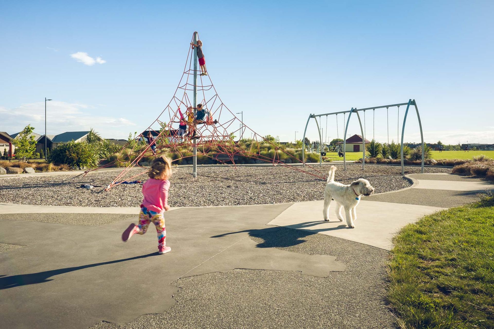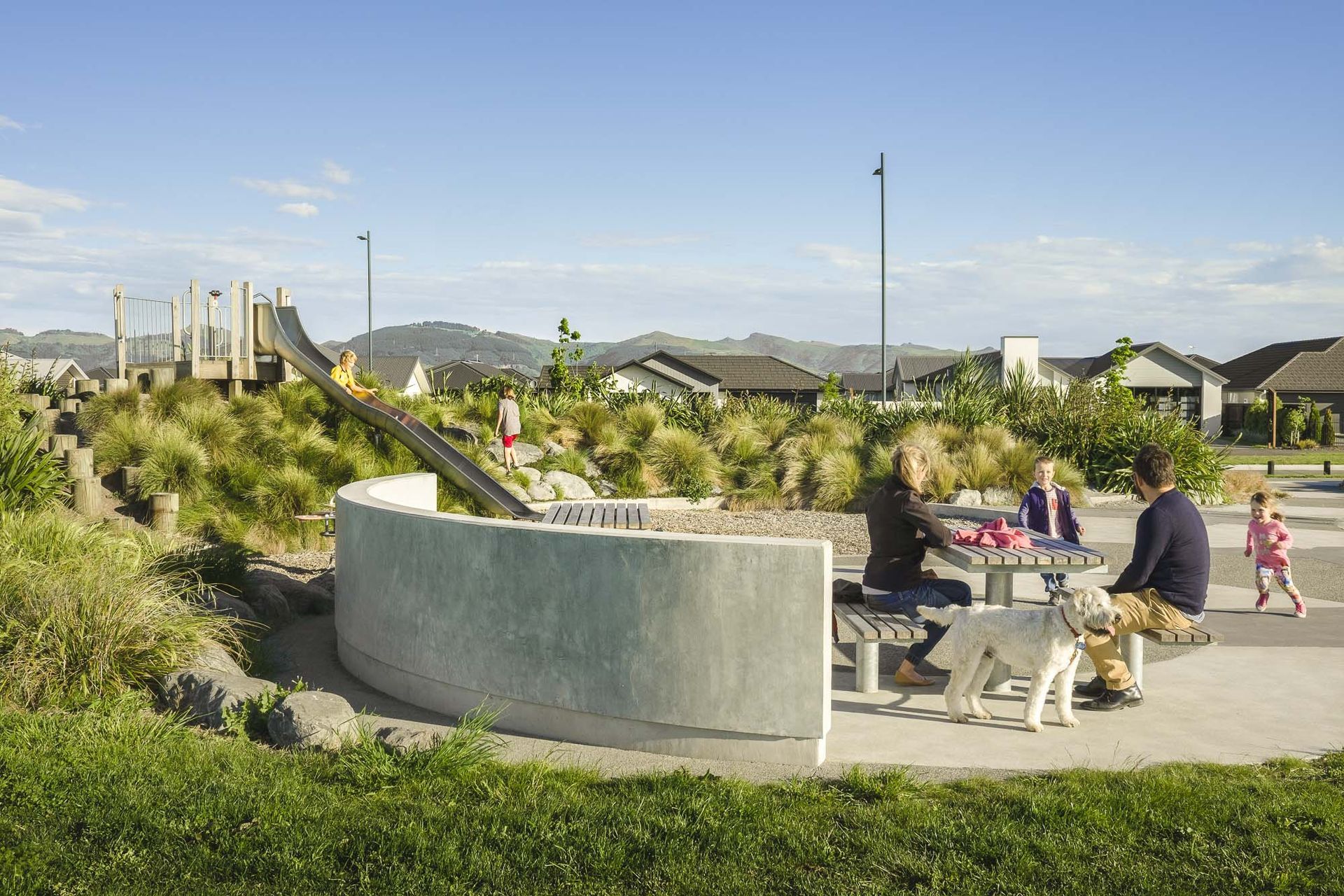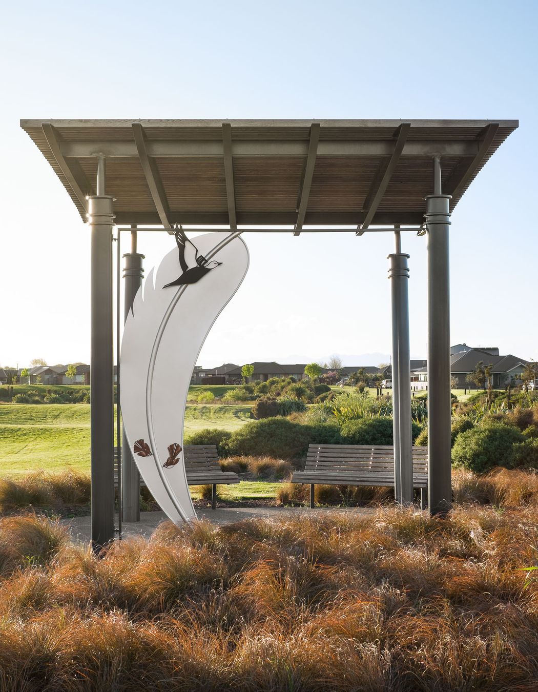 ArchiPro Project Summary - A thoughtfully designed subdivision that honors Ngai Tahu heritage and the historical Wigram Aerodrome, featuring extensive native plantings and seasonal color through a blend of indigenous and exotic tree species.