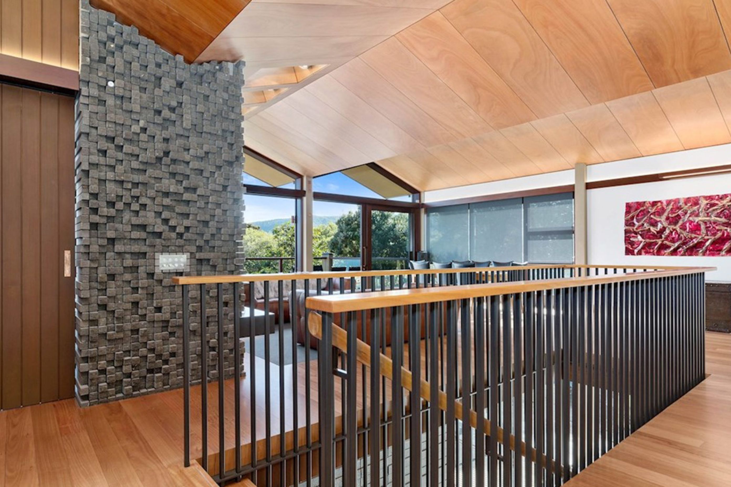 ArchiPro Project Summary - A contemporary house harmoniously integrated into the native bush, featuring two pavilions with sculpted roofs, crafted from natural materials for a timeless aesthetic.