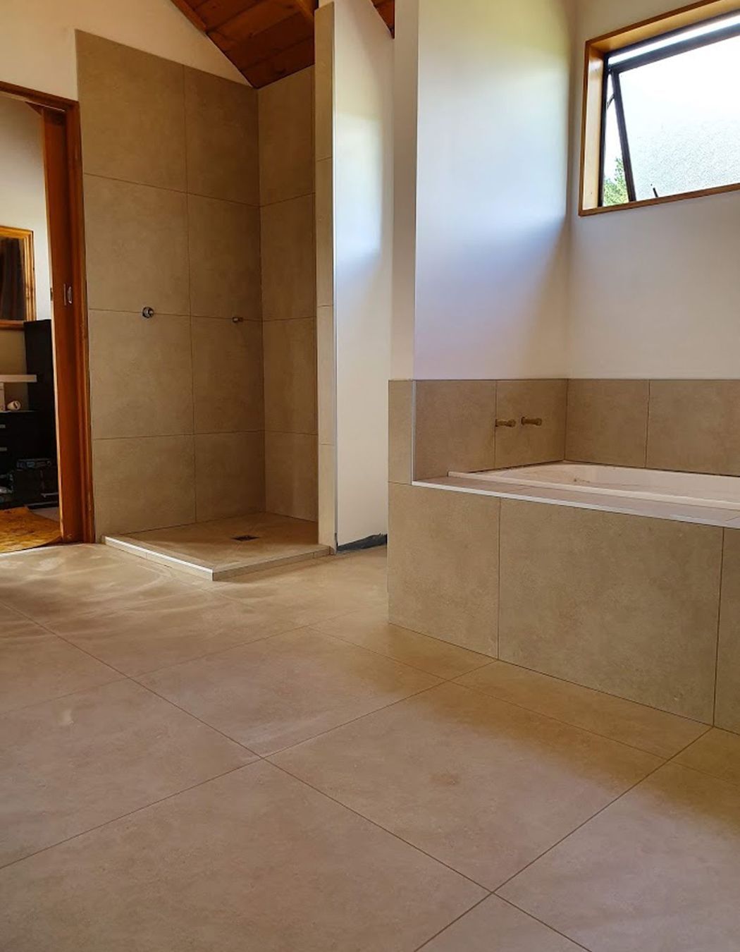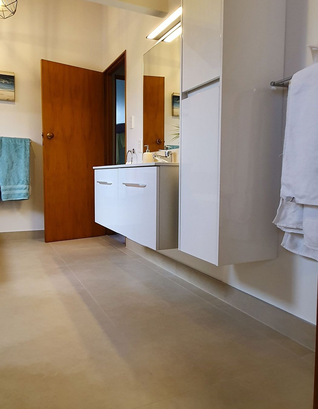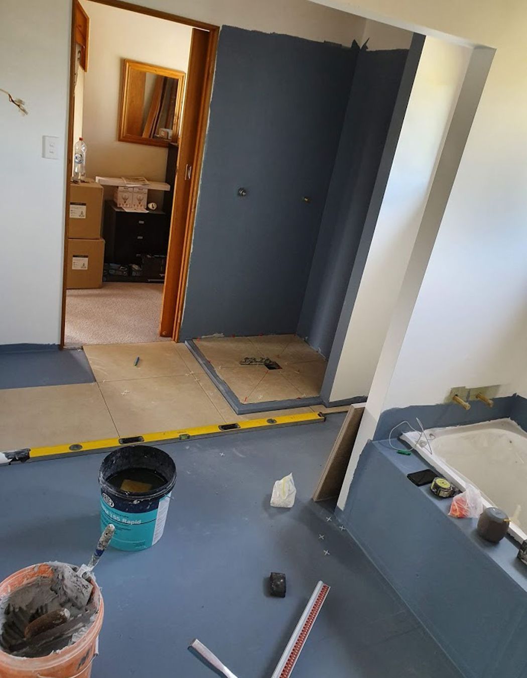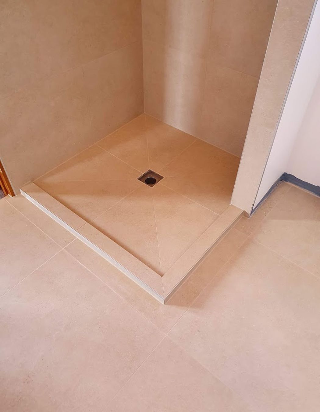 ArchiPro Project Summary - Comprehensive double bathroom renovation transforming a three-room layout into a spacious open-plan design, featuring complete demolition, new plumbing and electrical systems, and high-quality finishes throughout.