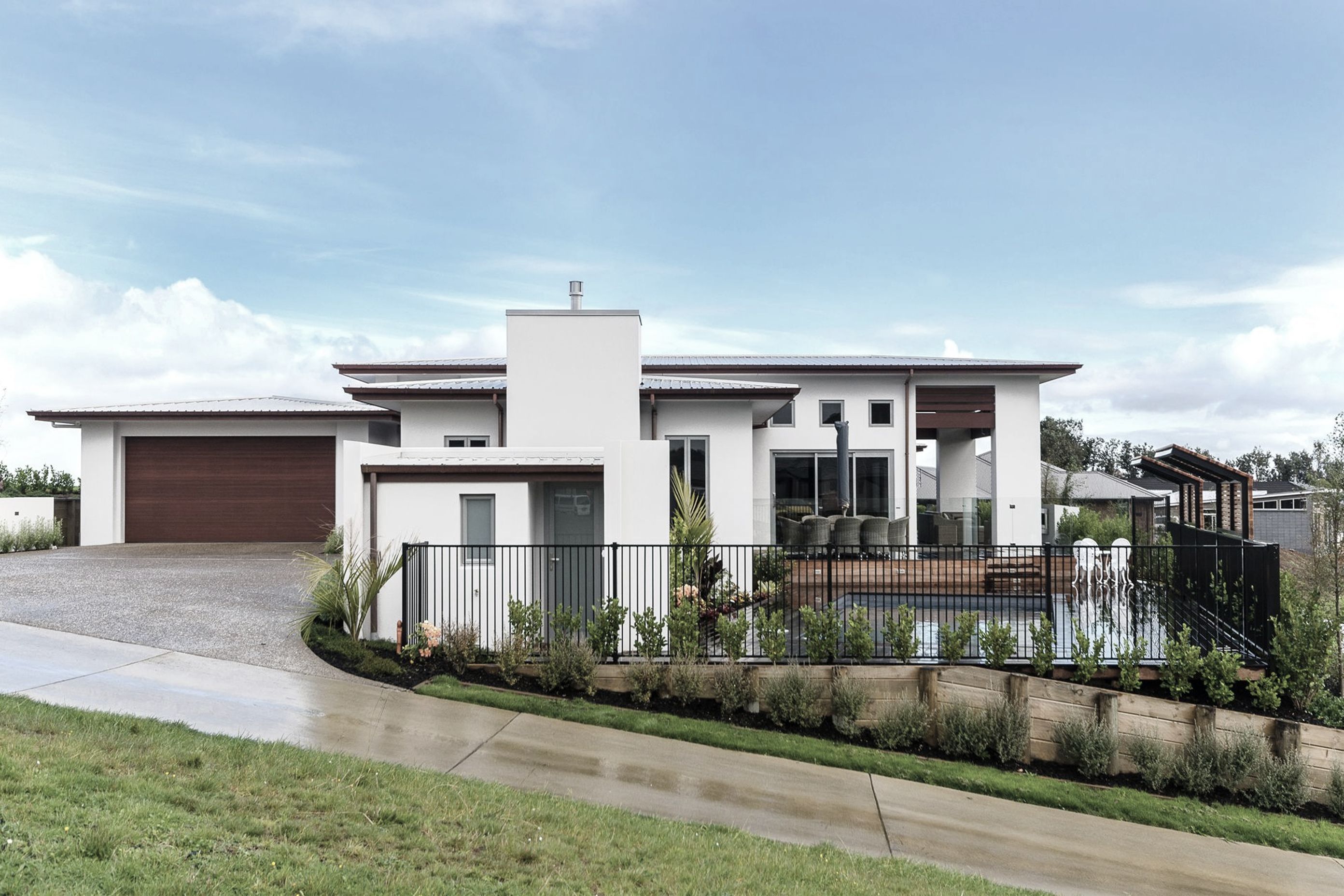 ArchiPro Project Summary - A stunning 420sqm home in Pukekohe, featuring high ceilings, architectural joinery, and a luxurious pool area, expertly crafted by Ohlson & Whitelaw to bring our clients' vision to life.