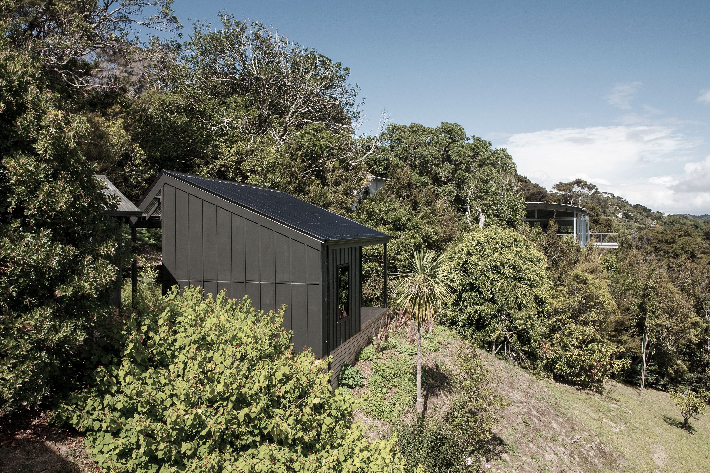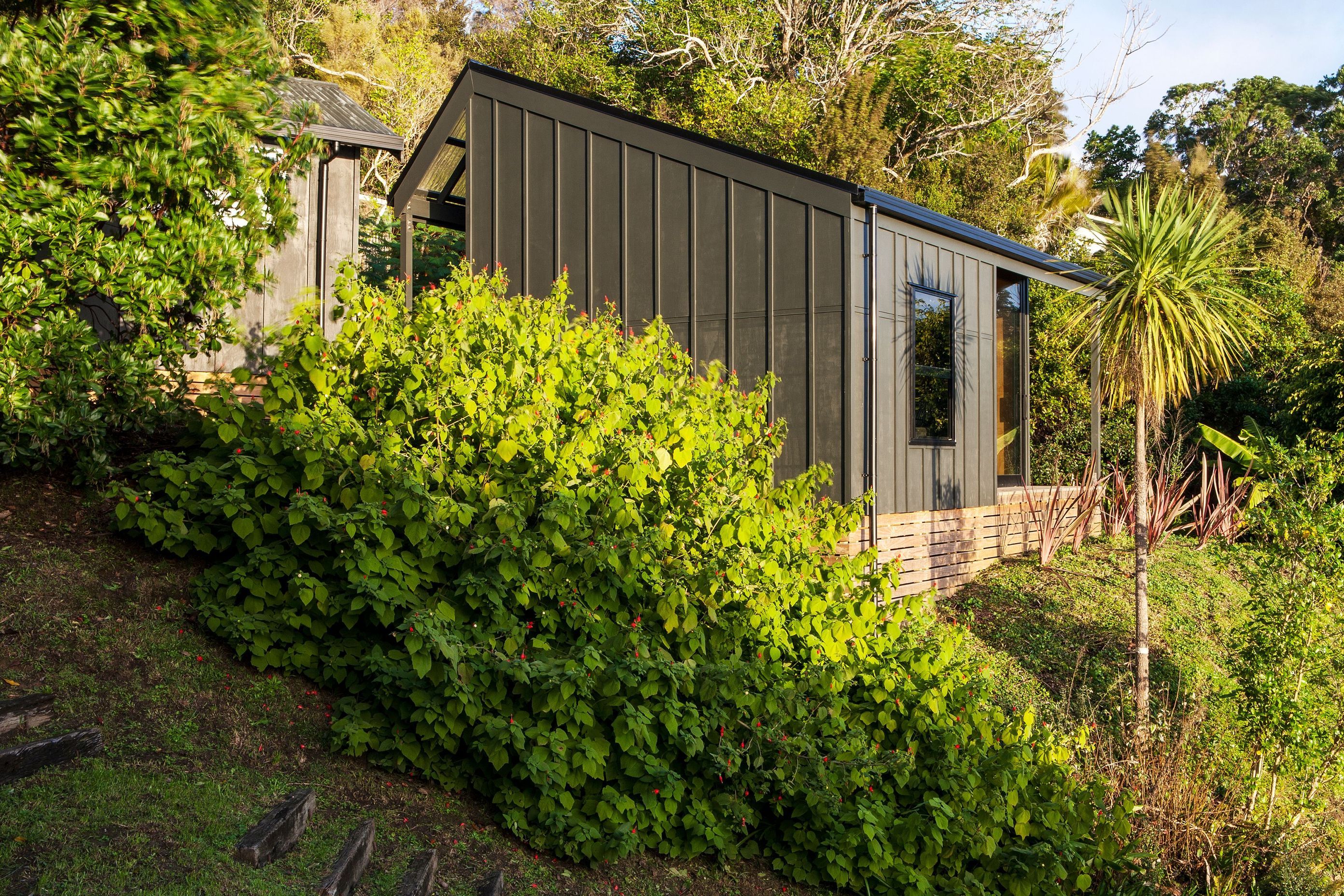 ArchiPro Project Summary - A charming beach house sleep-out in Scotts Landing, featuring a collection of huts designed for family accommodation, blending nostalgic aesthetics with modern comforts, and offering stunning views of the Mahurangi Peninsula.