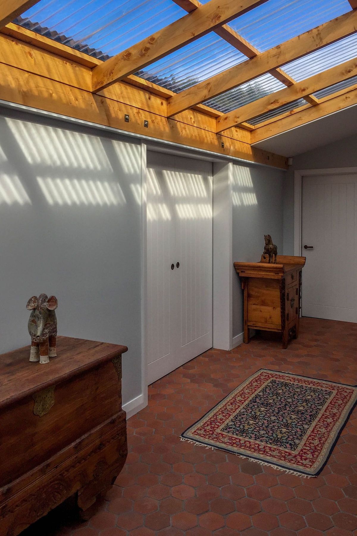 ArchiPro Project Summary - A transformative renovation of Windmill Cottage, enhancing light and warmth while harmonizing with the lush pastoral landscape near Matakana, featuring natural timber and terracotta finishes that complement the clients' eclectic art and furniture collections.
