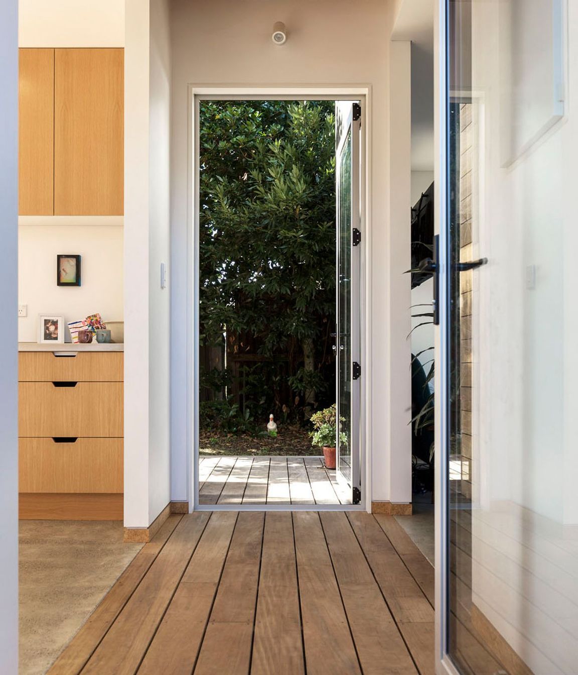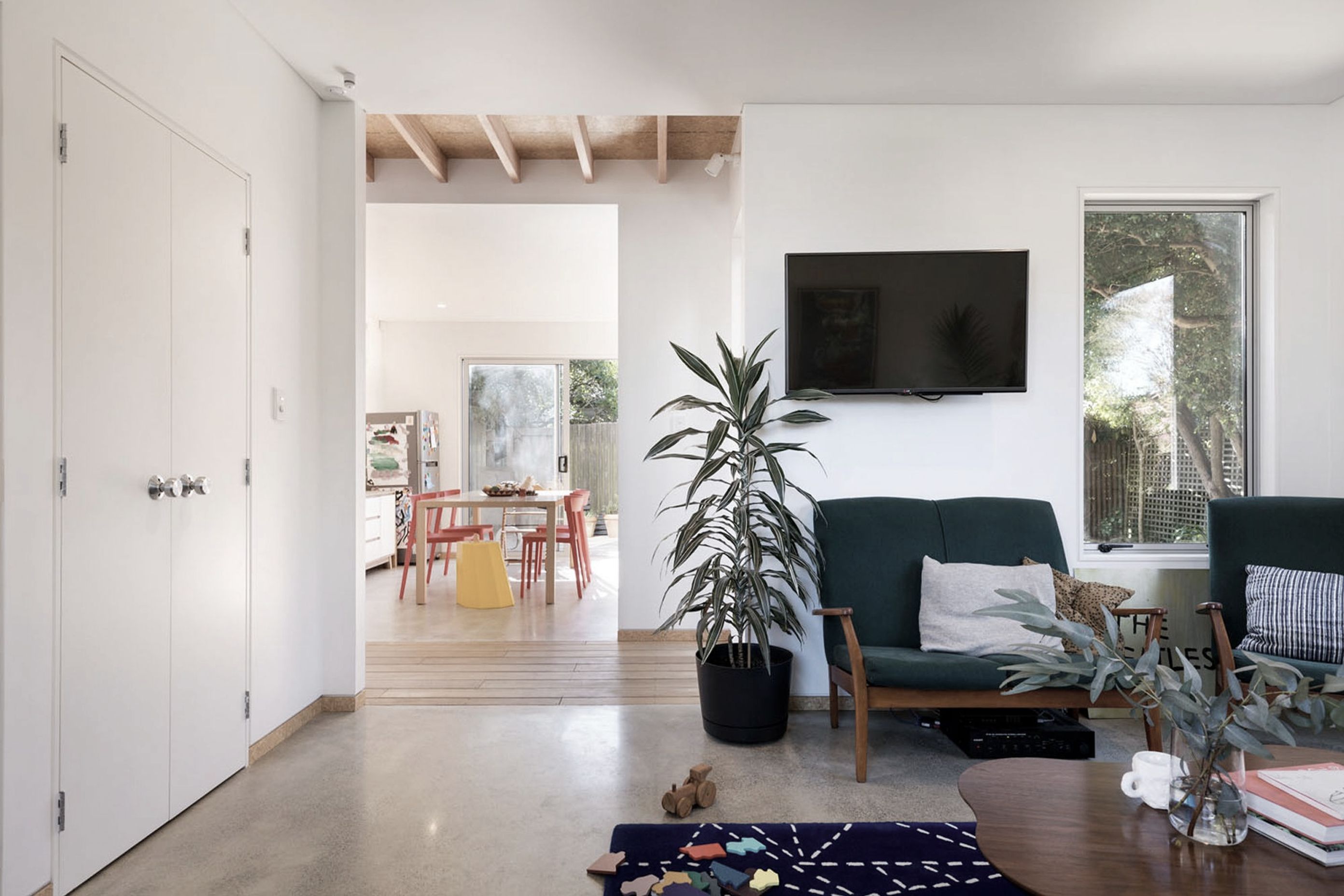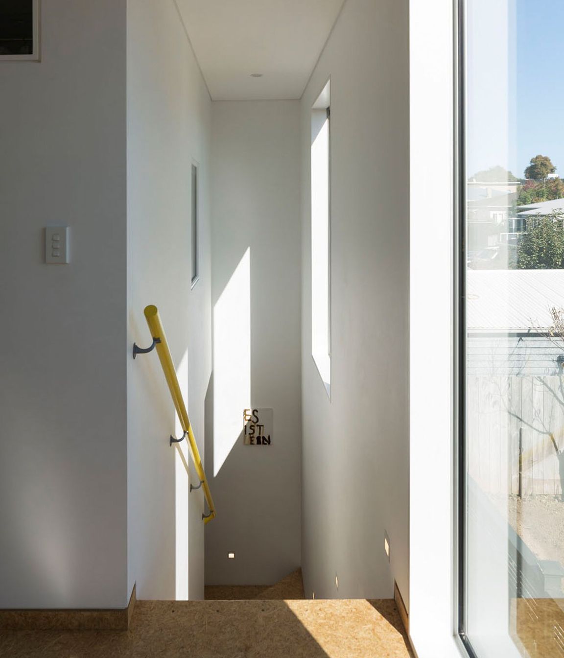 ArchiPro Project Summary - Small footprint home designed for a family of artists, featuring intelligent space utilization, thoughtful detailing, and a harmonious blend of color and materials, all while adhering to budget constraints.