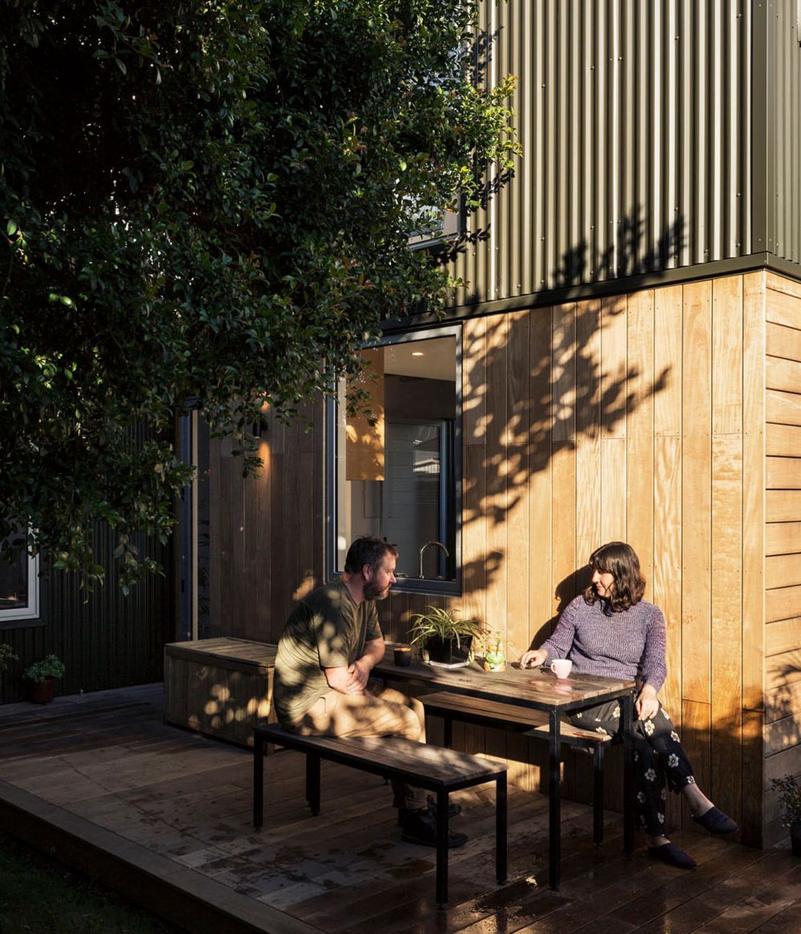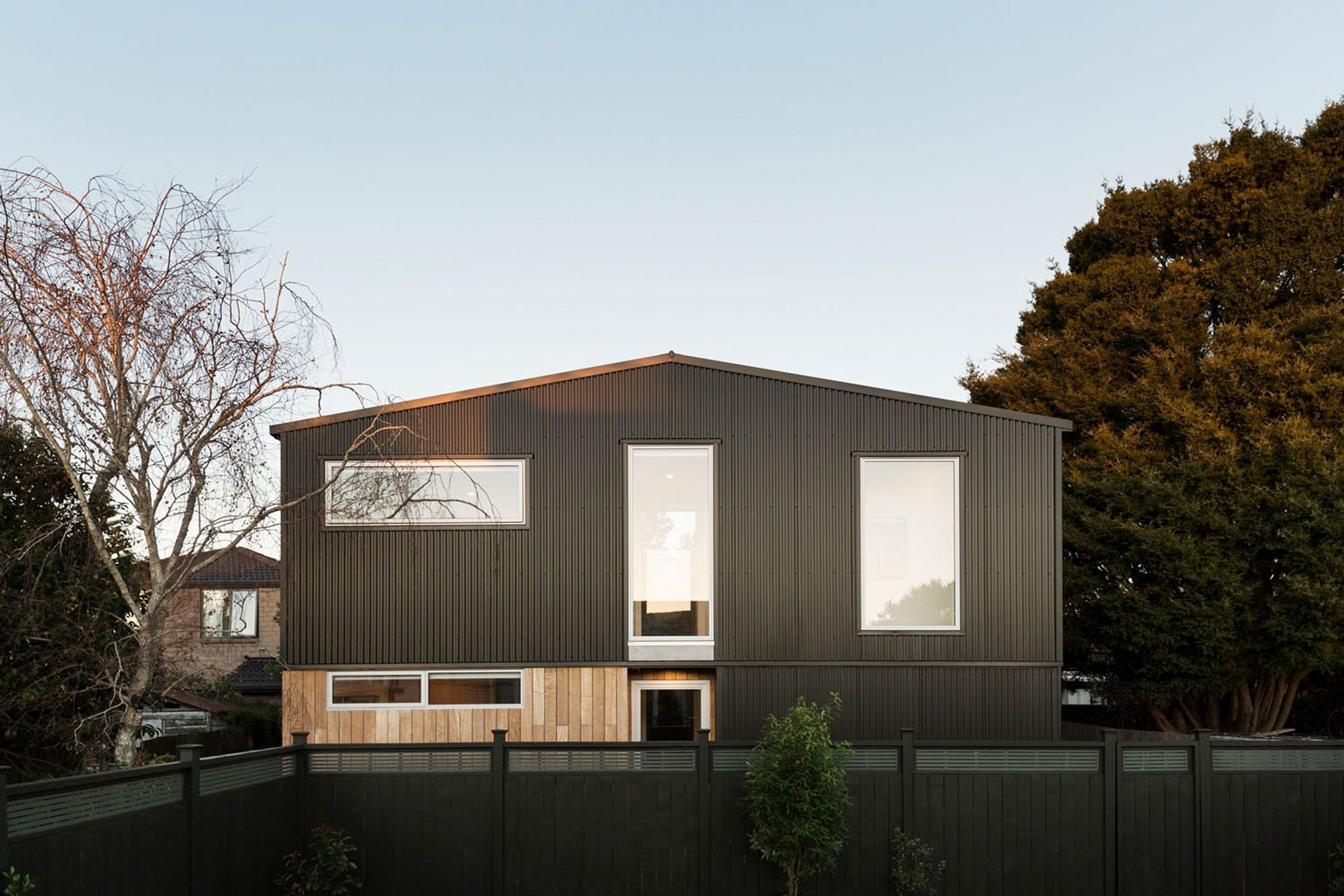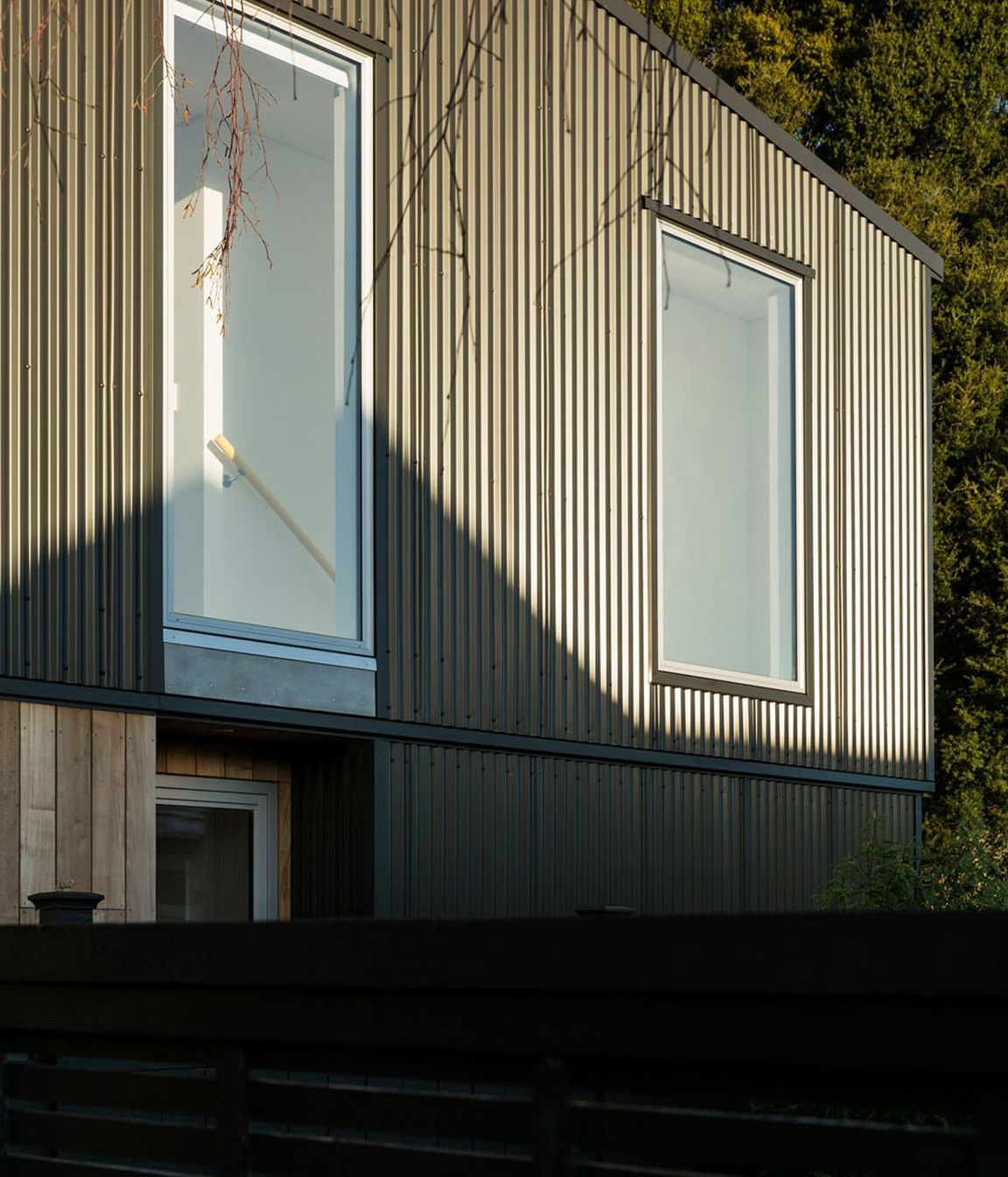 ArchiPro Project Summary - Small footprint home designed for a family of artists, featuring intelligent space utilization, thoughtful detailing, and a harmonious blend of color and materials, all while adhering to budget constraints.