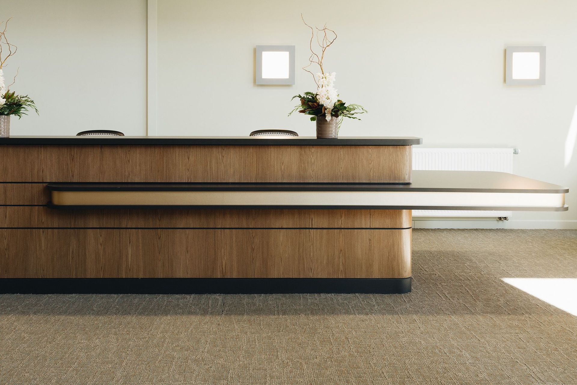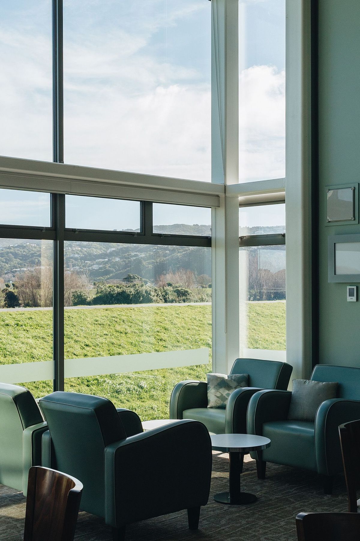 This space faces the embankment by the Hutt River so the interior connects with an exterior enjoyed though double height glazing.