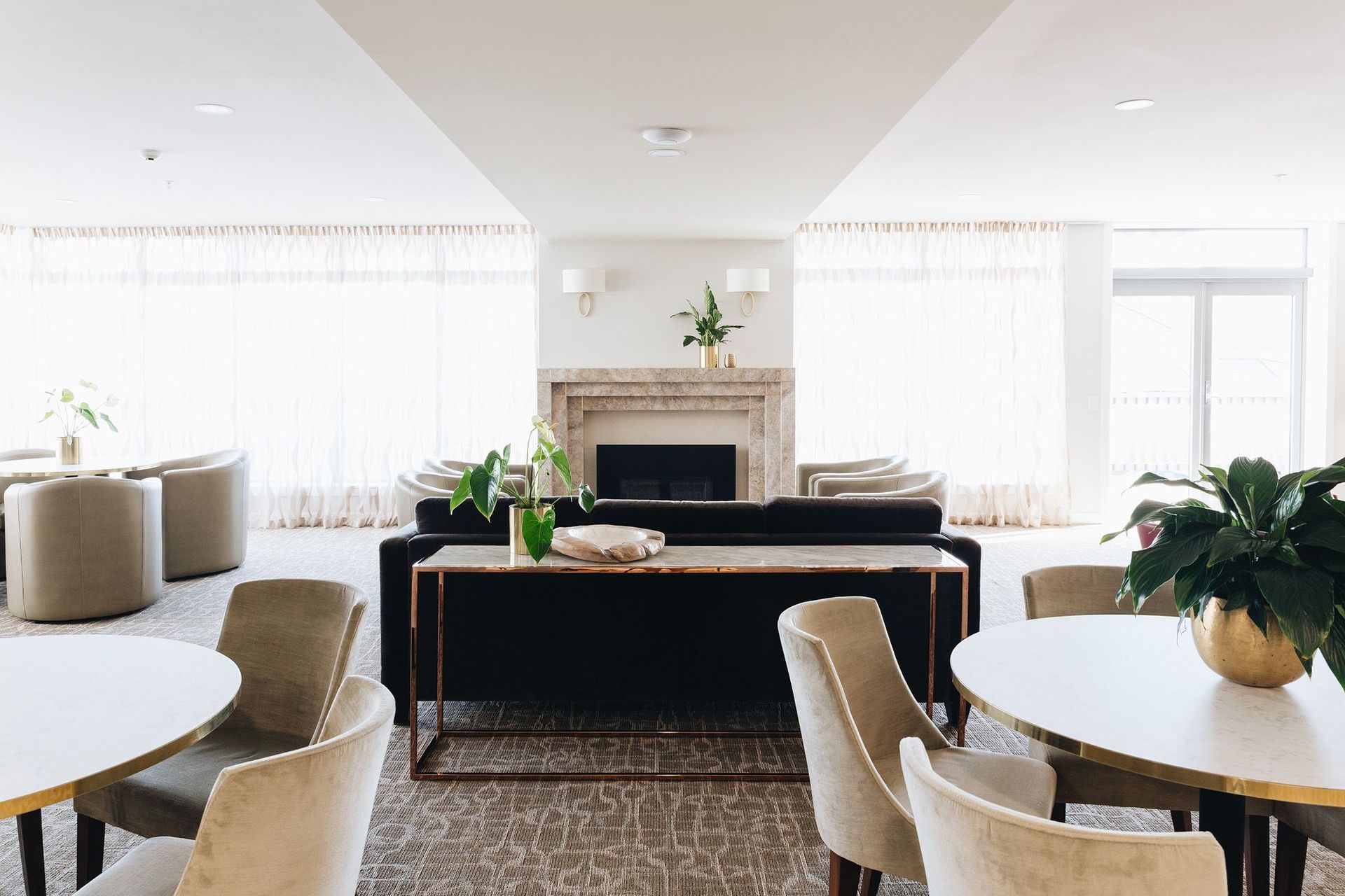 We loved designing this 'movie theatre' for the residents. If you look closely you'll see we customised the stitch detailing on these chairs to give them a contemporary art deco feel.