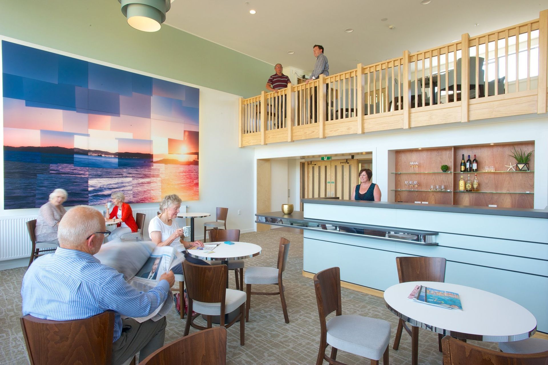 The armchairs in Bar West are really popular. When we were taking these photos we met a resident who was 30mins early for her knitting group so she could get her favourite seat in the sun.