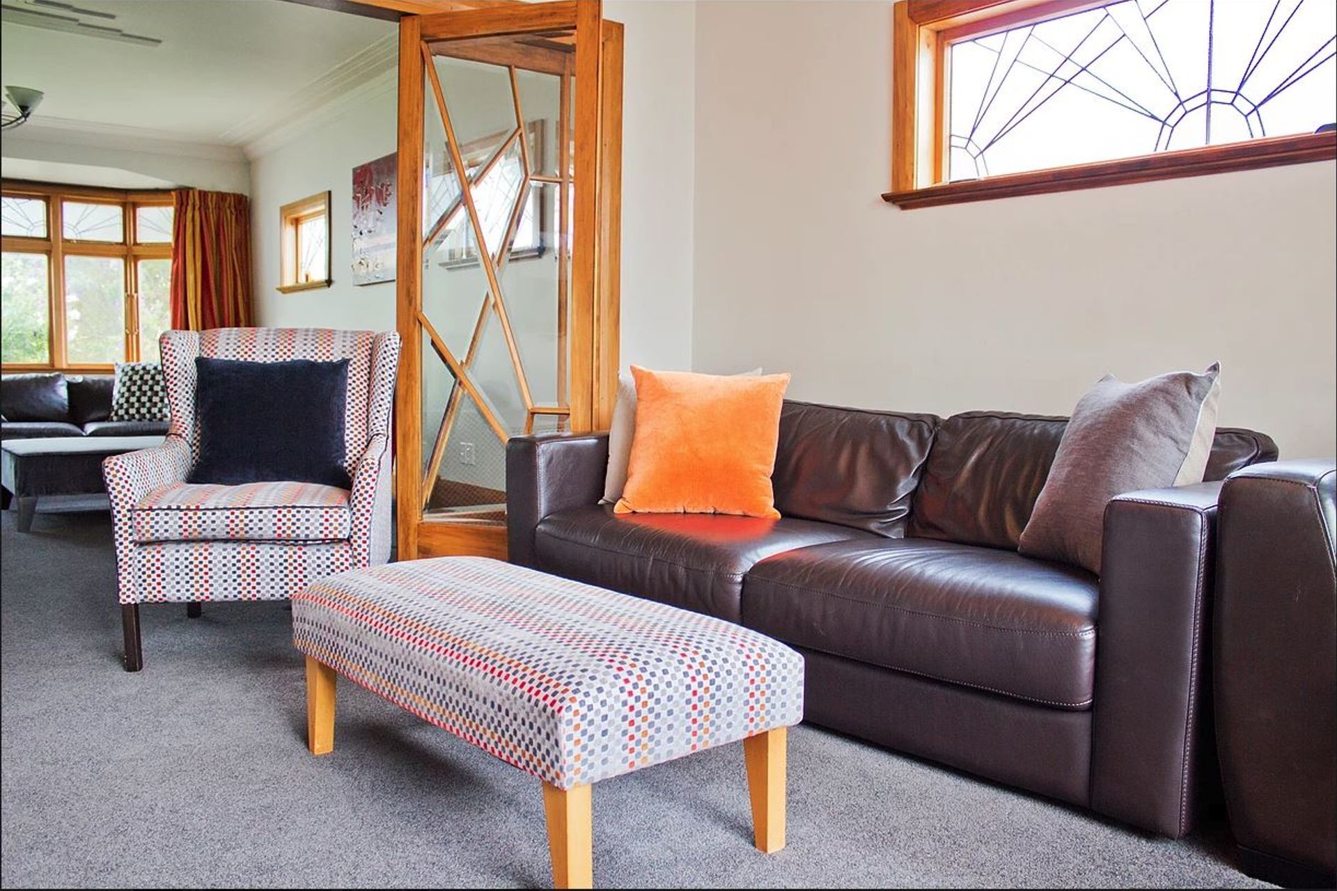 ArchiPro Project Summary - A sophisticated renovation of a grand Woburn home, blending modern grey tones with rich reds and burnished oranges, featuring custom upholstery that harmonizes traditional and contemporary elements throughout the space.
