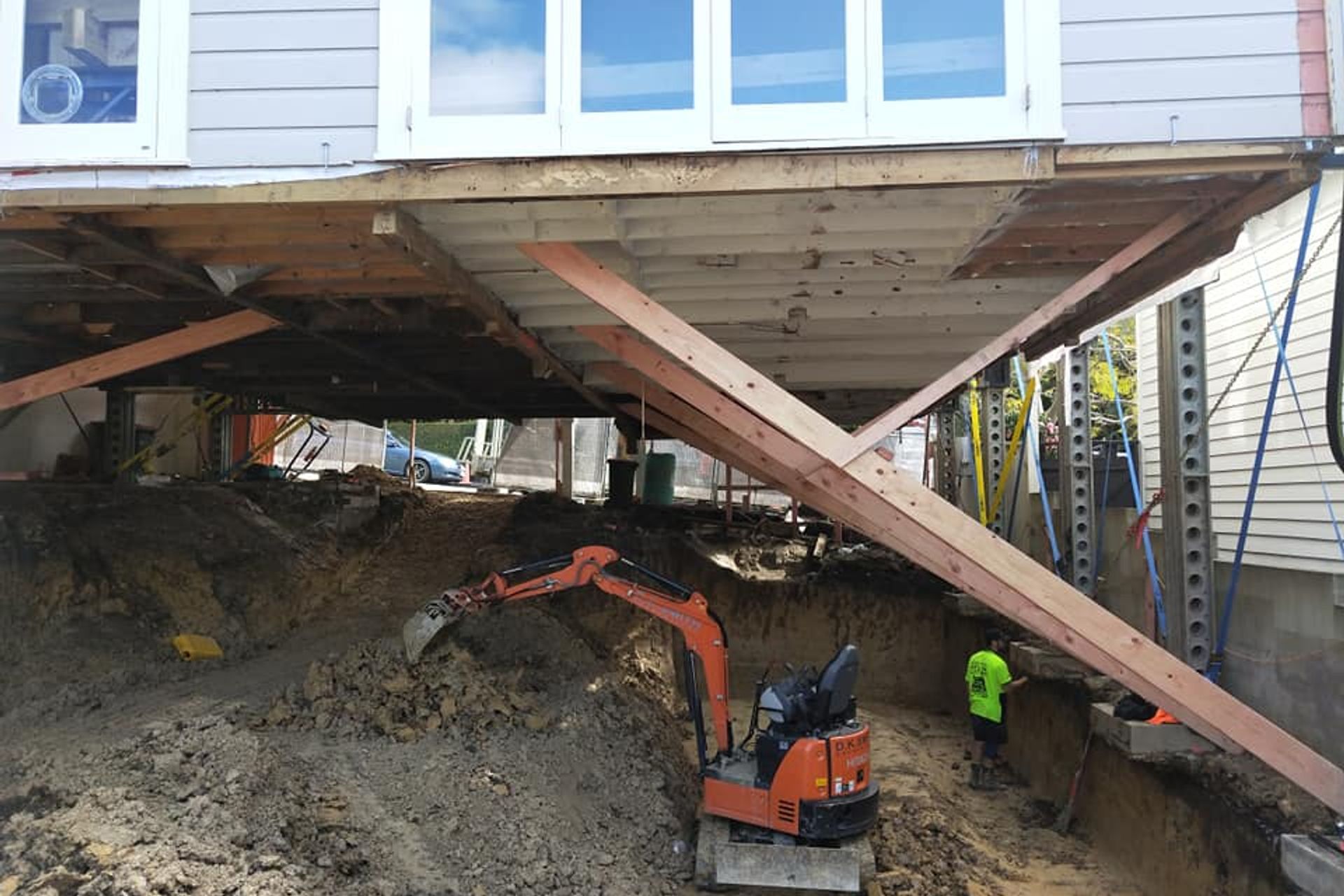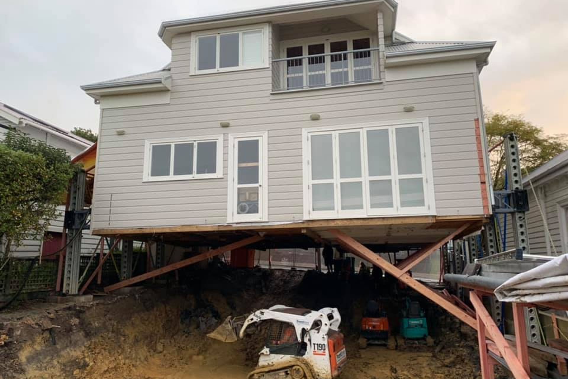 Auckland House Lifting. Auckland House Lifting is a house lifting company specialising in house lifting, sliding, levelling, and propping. It's also the sister company of Viking Homes. We provide house lifting services to residential properties in Auckland and surrounding areas. We are experts in complete design-lift-build project management and we also work alongside other builders.We have a unique lifting and propping rig that has been engineered for the safest and most cost-effective method to help us: Raise your house up to three metres off the groundProp your house at its existing heightSupport your houseWith the use of our rig and our full range of earthwork equipment, our team of qualified builders and house lifters can:Build underneath to add another storey for extra rooms, floor space, or better viewsExcavate or dig underneath for a garage, basement, or extra storage spaceChange or repair the foundationWork in tight, hard to access sitesWork with your architect and other buildersProvide advice on your projectProvide our own architects and designers House SlidingWe can slide houses to relocate them on the same section with millimetre accuracy using our custom-built track and skate system. With this system, we can also rotate the orientation of the building to suit any location on the property. This is a controlled push/pull system which ensures the safety of the building during the moving process. Our slide and rotate system is the safest way to reposition your dwelling.