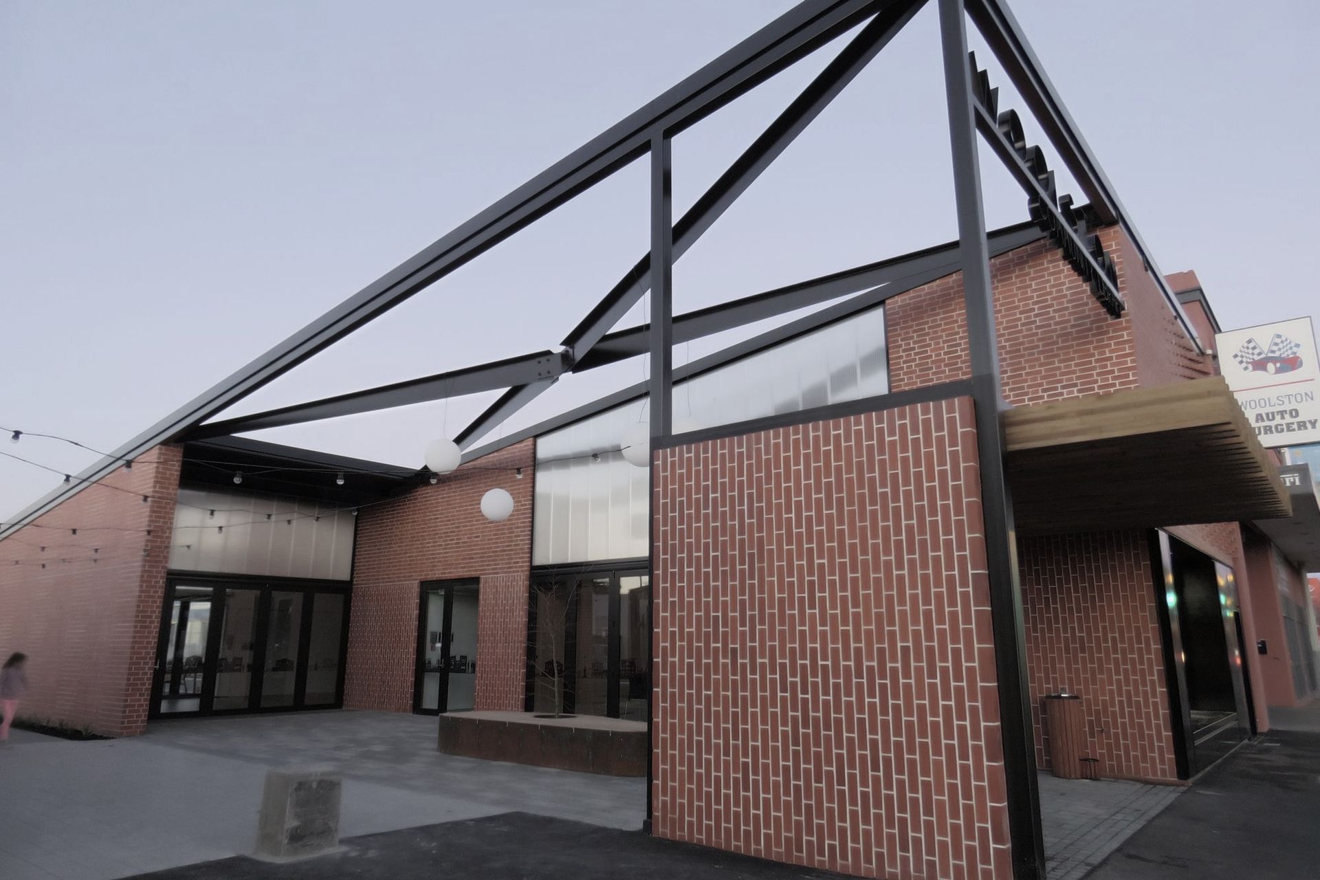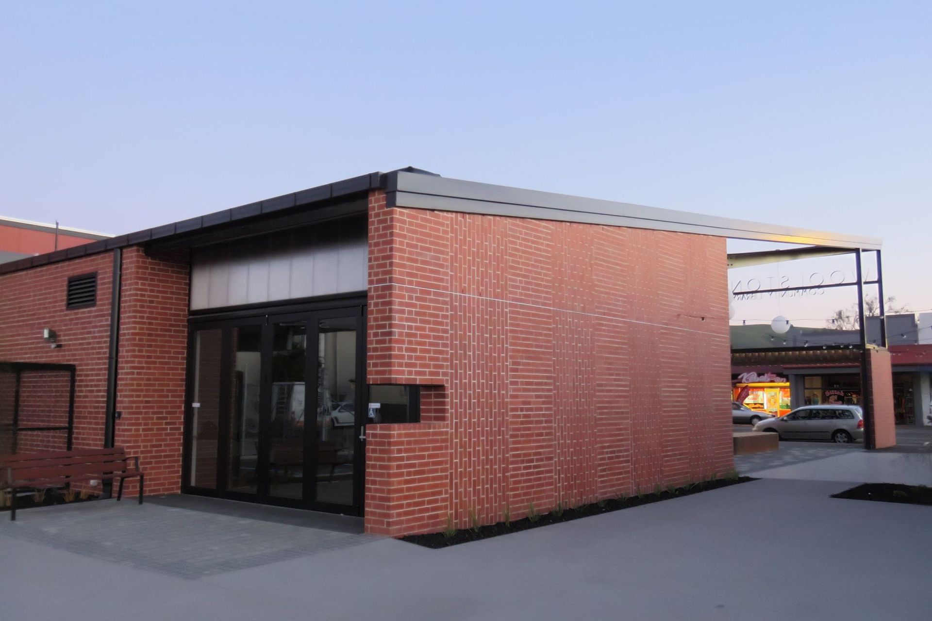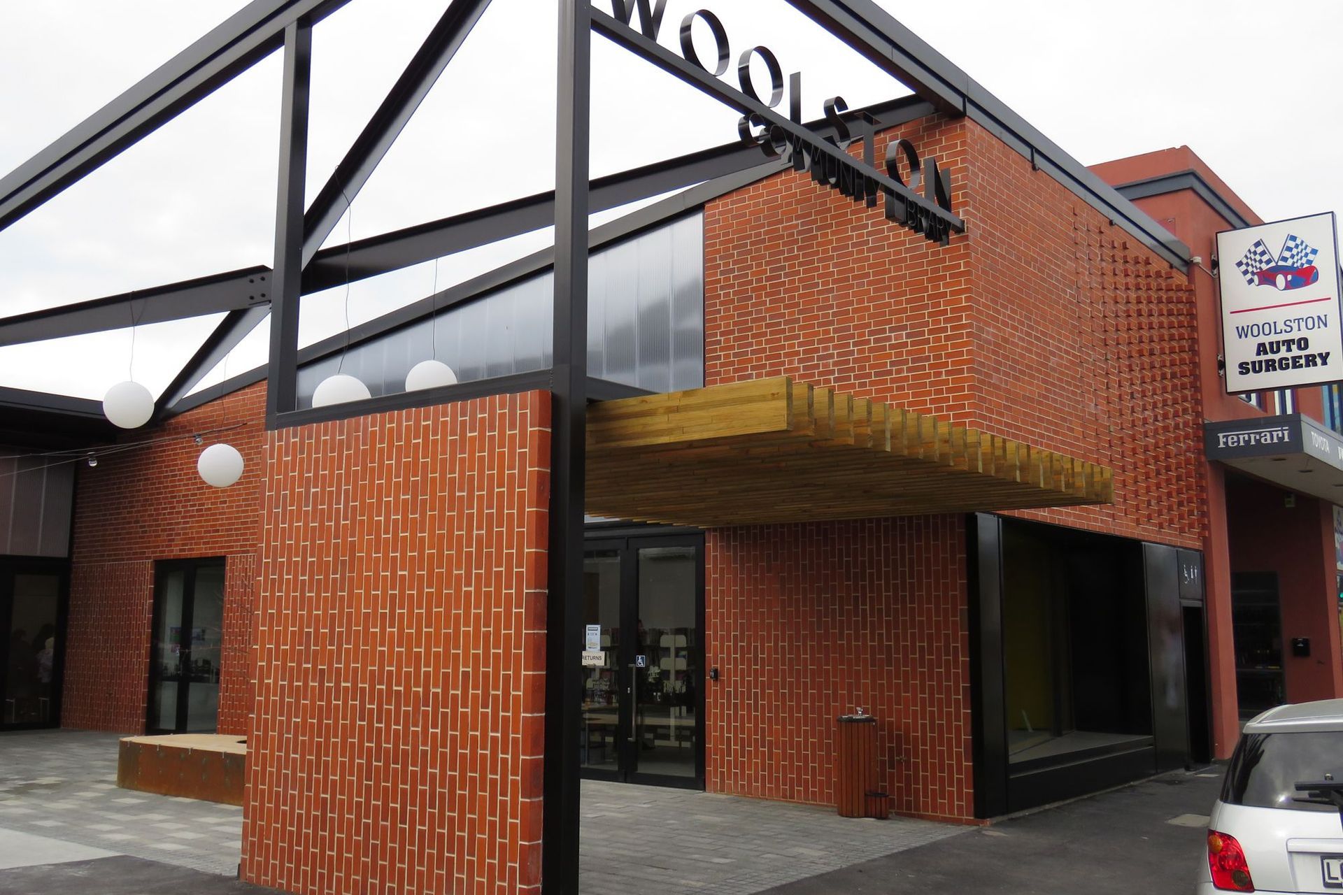 ArchiPro Project Summary - A modern community hub in Woolston, Christchurch, designed by Ignite Architects, featuring a blend of historical inspiration and contemporary materials, including red brick and black steel, providing essential facilities for local residents.