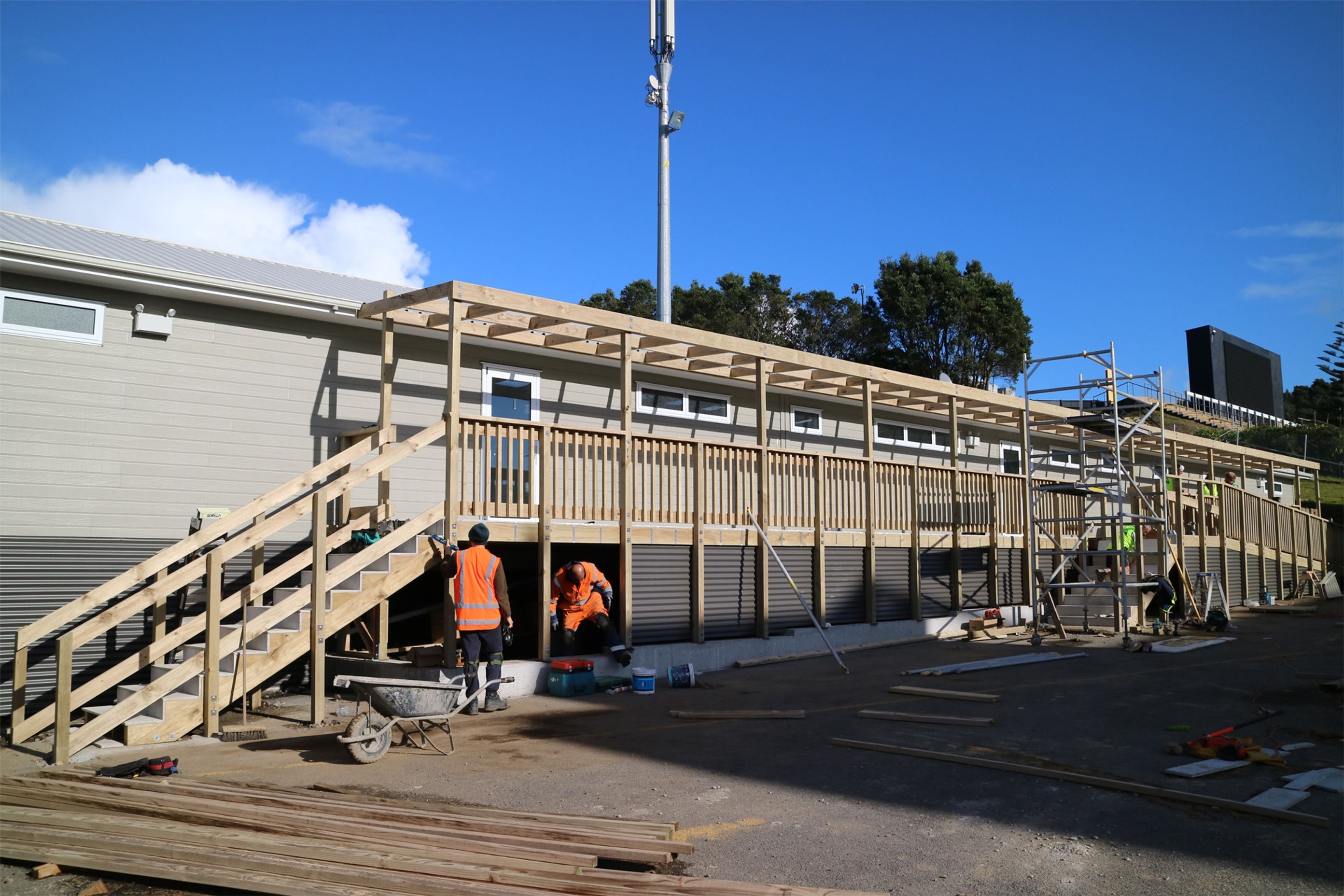 ArchiPro Project Summary - Installation of temporary facilities at Yarrow Stadium following safety concerns, completed in August 2018 for the New Plymouth District Council, showcasing effective collaboration and rapid construction under tight deadlines.