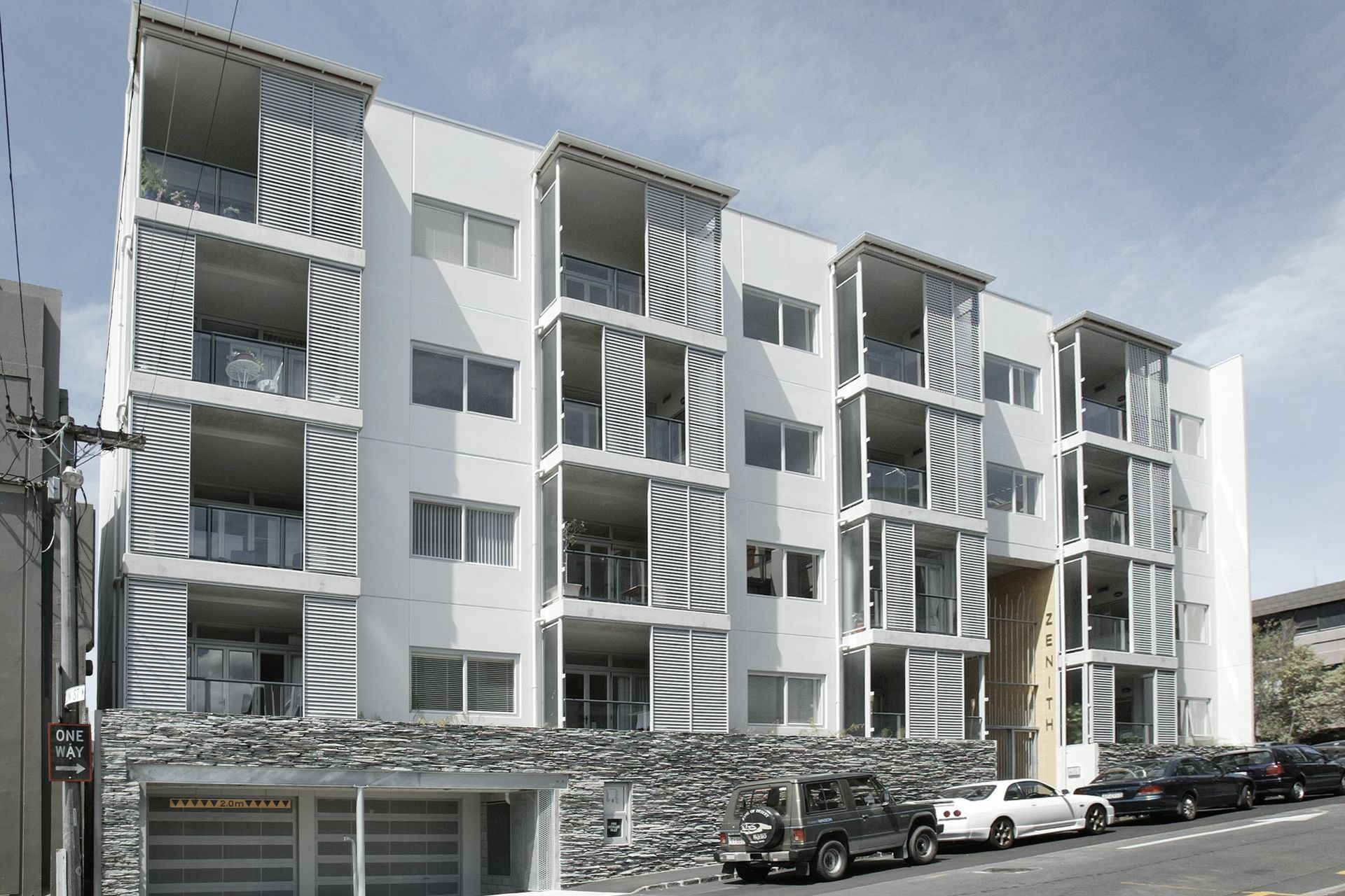 ArchiPro Project Summary - Zenith Apartments: A timeless example of high-density living, featuring 56 elegant three-bedroom apartments with customizable louvre panels for optimal light, ventilation, and privacy, complemented by two basement parking spaces for each unit.