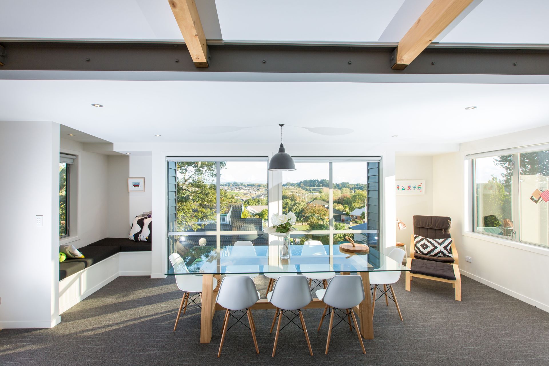 ArchiPro Project Summary - Award-winning contemporary home in Cambridge, designed to maximize stunning valley views while overcoming site challenges, featuring open-plan living, a striking entrance, and a harmonious blend with the natural landscape.