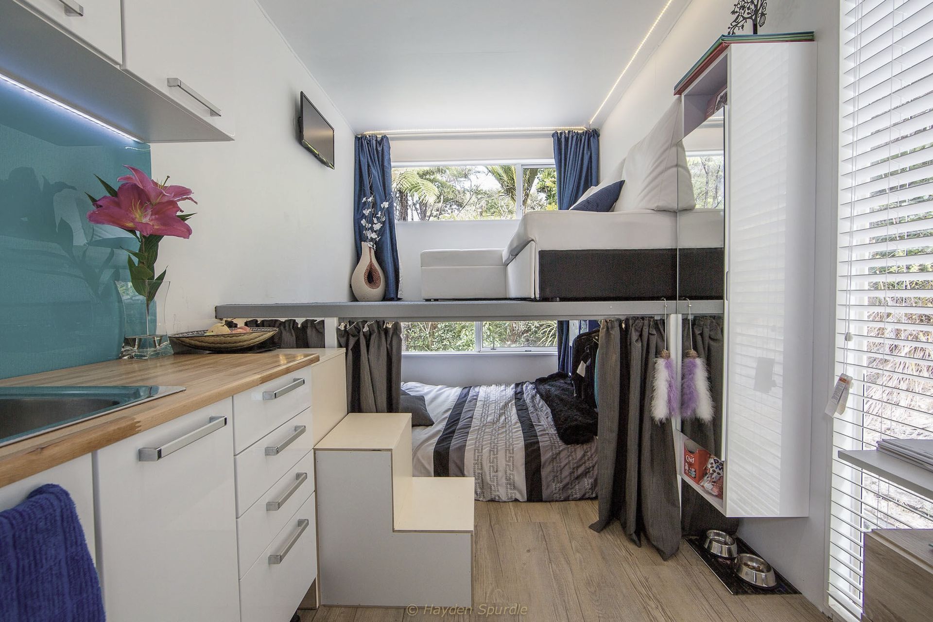 ArchiPro Project Summary - Innovative off-grid tiny home in Auckland, showcasing container-based construction with sustainable features and efficient use of space.