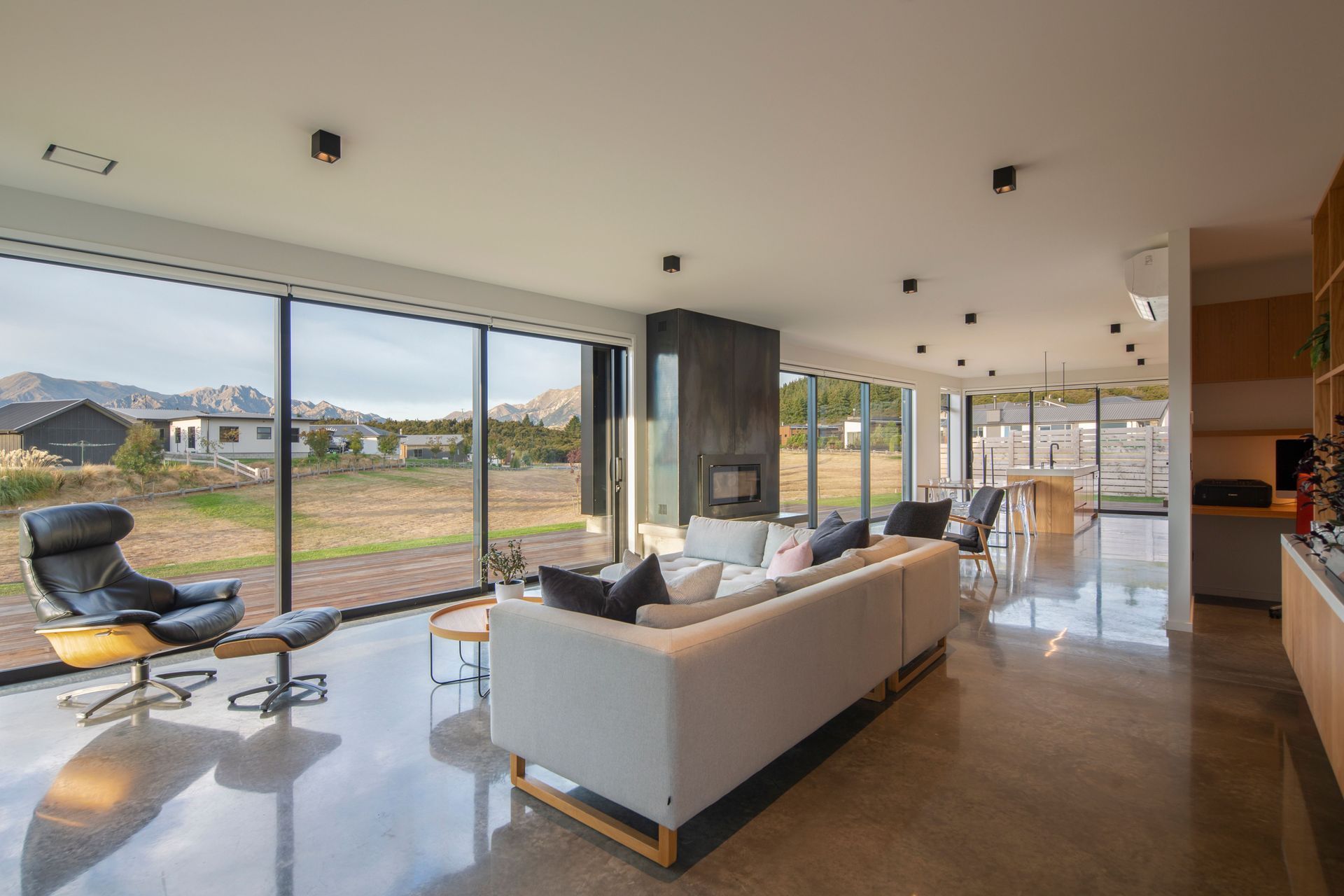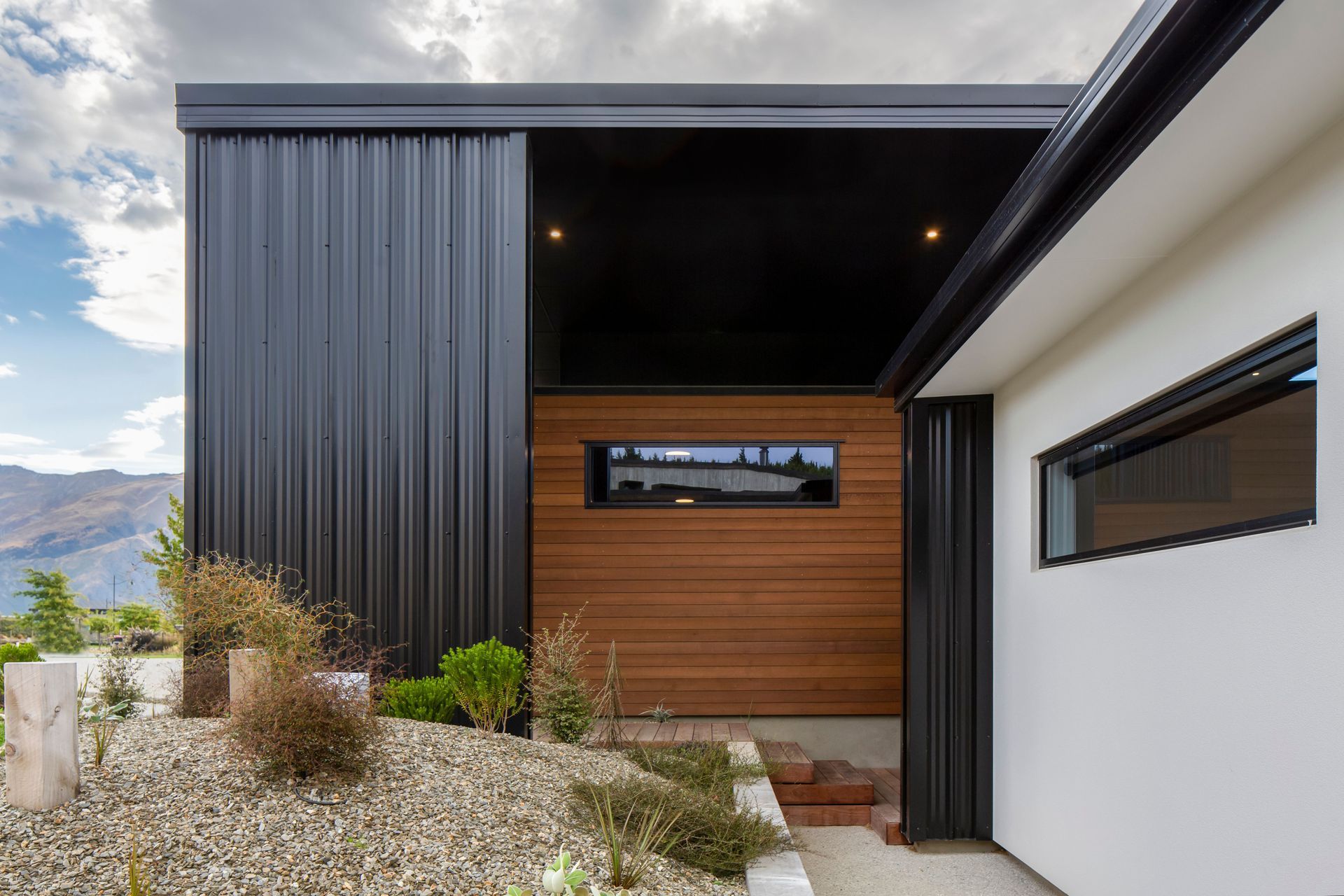 ArchiPro Project Summary - A striking modern home in Wanaka featuring a unique floating roof design, energy-efficient elements, and stunning views, seamlessly integrating with the hillside landscape and providing versatile outdoor living spaces.
